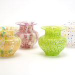 チサで最も人気のある小花器シリーズ。カンパネッラ工房の作品は、色鮮やかなムリーネと優しいフォルムが最大の魅力です。手に取ると、手のひらにすっぽりとおさまり大変なじみがよく、使うたびに愛着が増してゆきそう。ひとつひとつのムリーネが個性を持っており、活けるお花も花器もお互いを引き立て合います。小ぶりなのでお水替えも簡単に出来ますし、口径が小さすぎないので、スポンジなどで中を洗うことも出来ます。花器だけで充分な華やかさがあるので、お花を活けずインテリア・アイテムとして飾っておくだけでも、お家にほどよい色どりを与えてくれるのではないでしょうか。