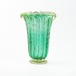 ガラスを二層にかさね、等間隔に気泡をあしらう伝統技術がさりげなく、さらに全体に24金箔をあしらうことで華やかさを演出します。ムラーノガラスらしい色の鮮やかさも魅力的。しっかりと重さもあるので少し高さのある生け込みも可能です。