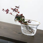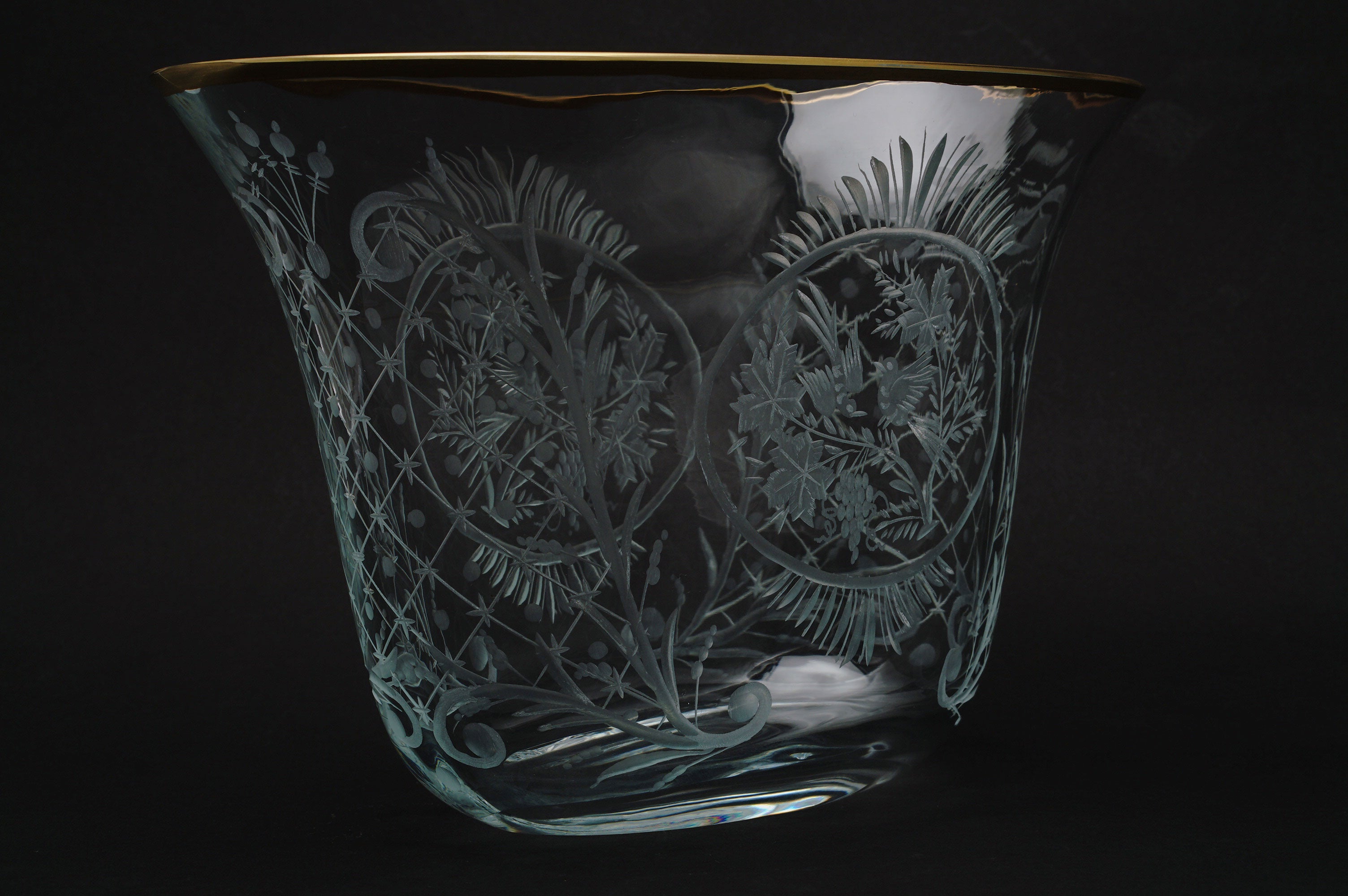 吹きガラスにおいては、制作途中に発生する小さな気泡や黒点、底面にポンテ跡(吹き竿を外した際の凹凸)がある場合がございます。
