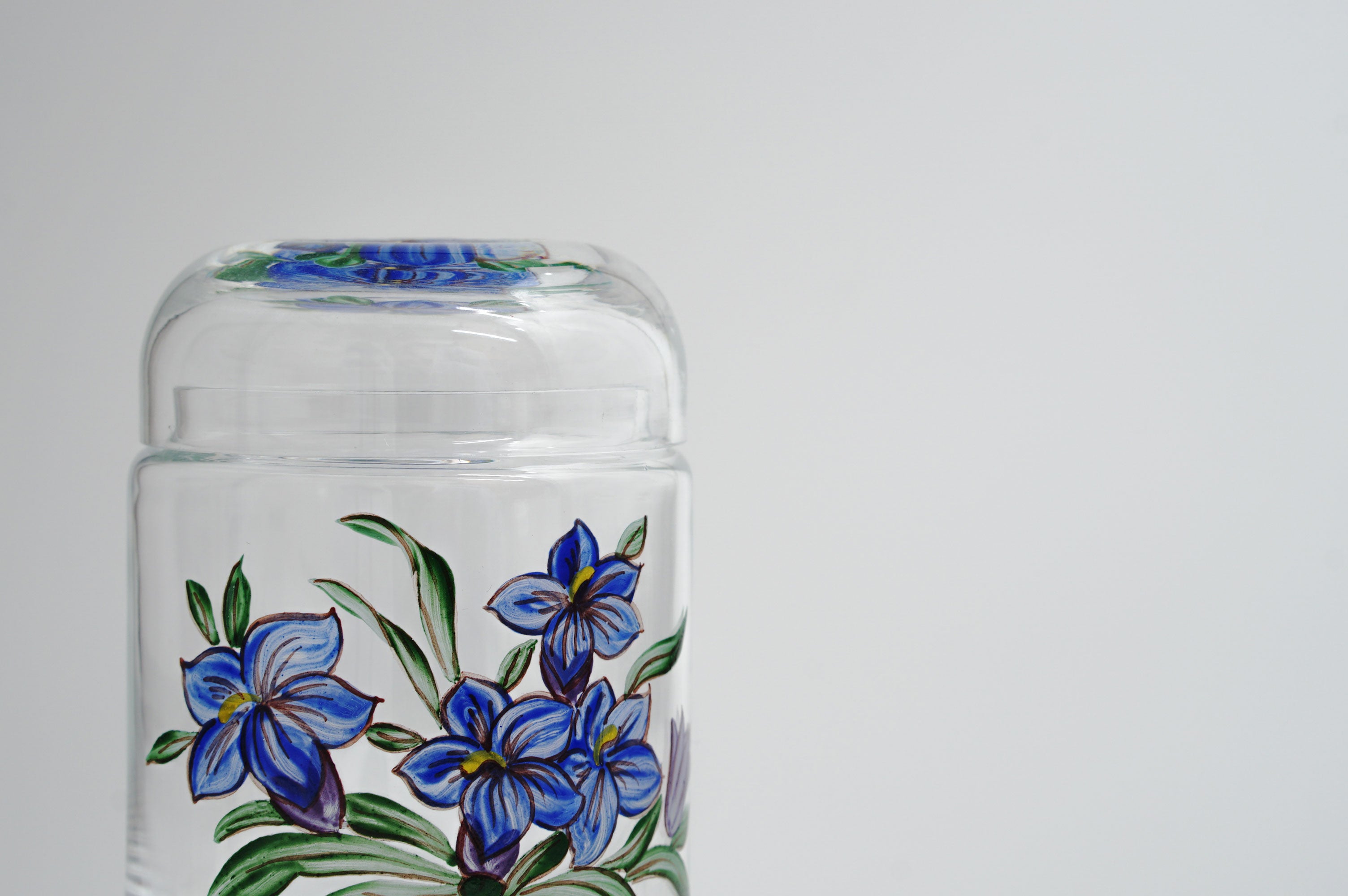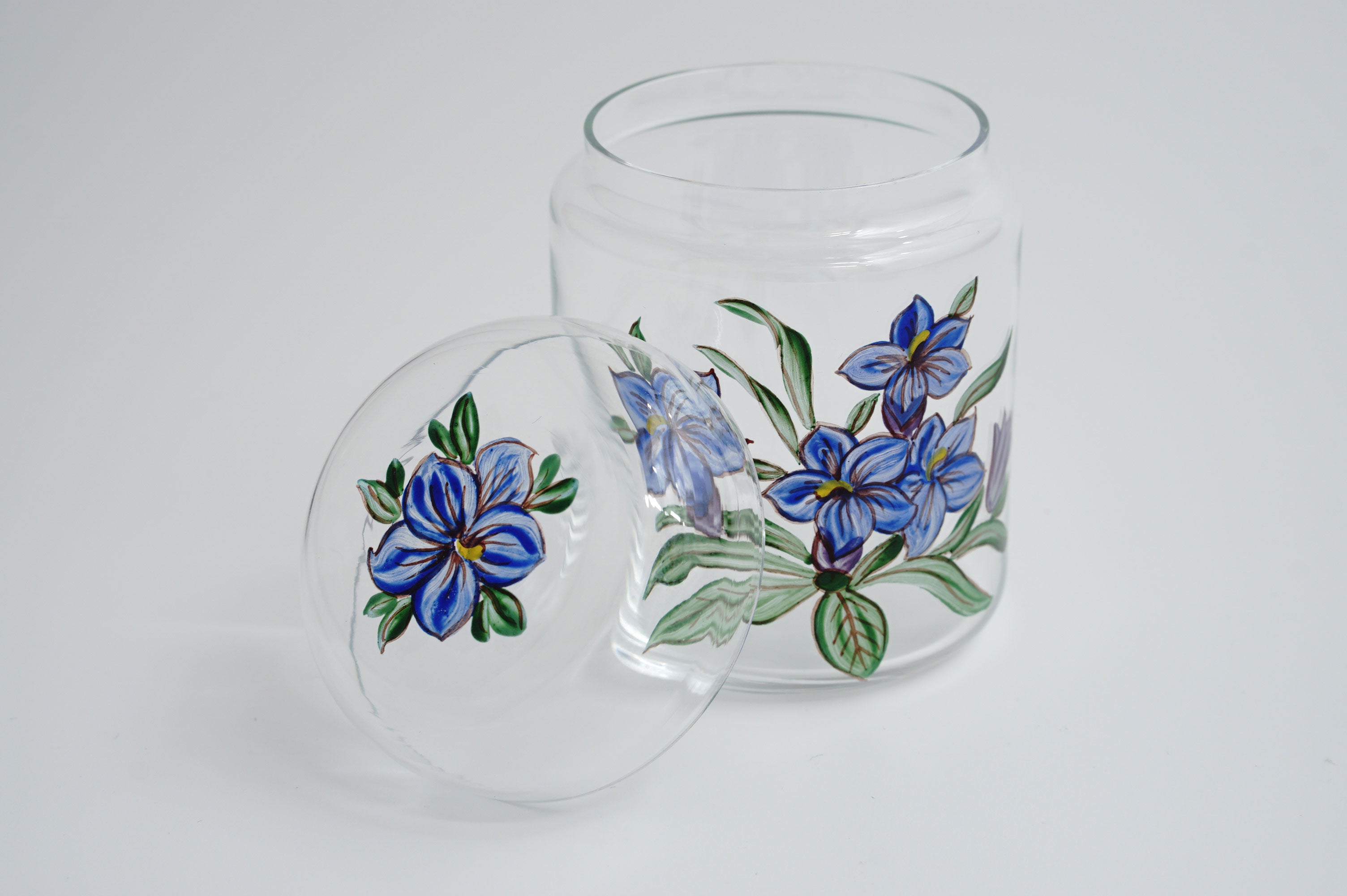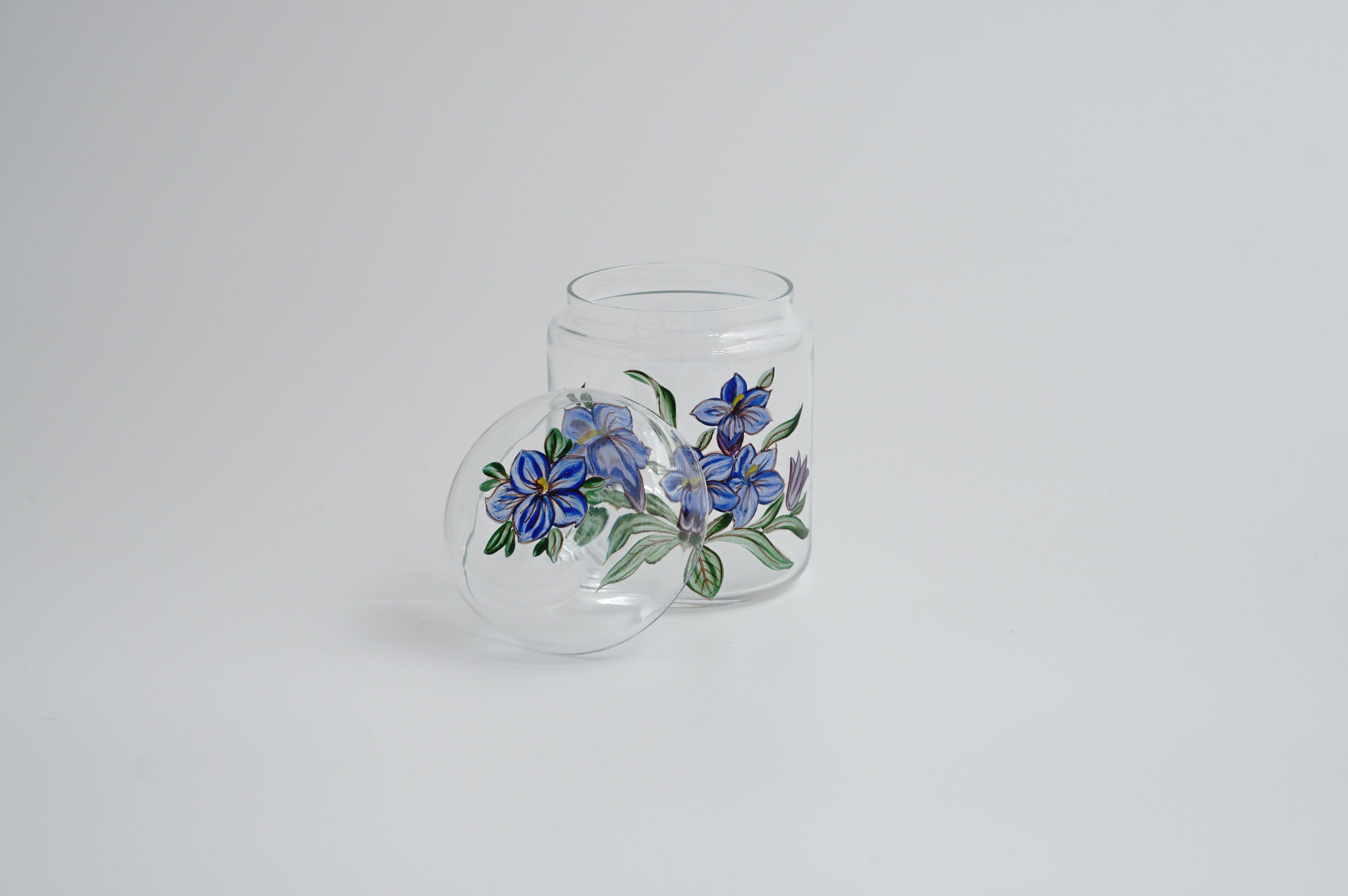 蓋付き茶入れ「花束」青い花