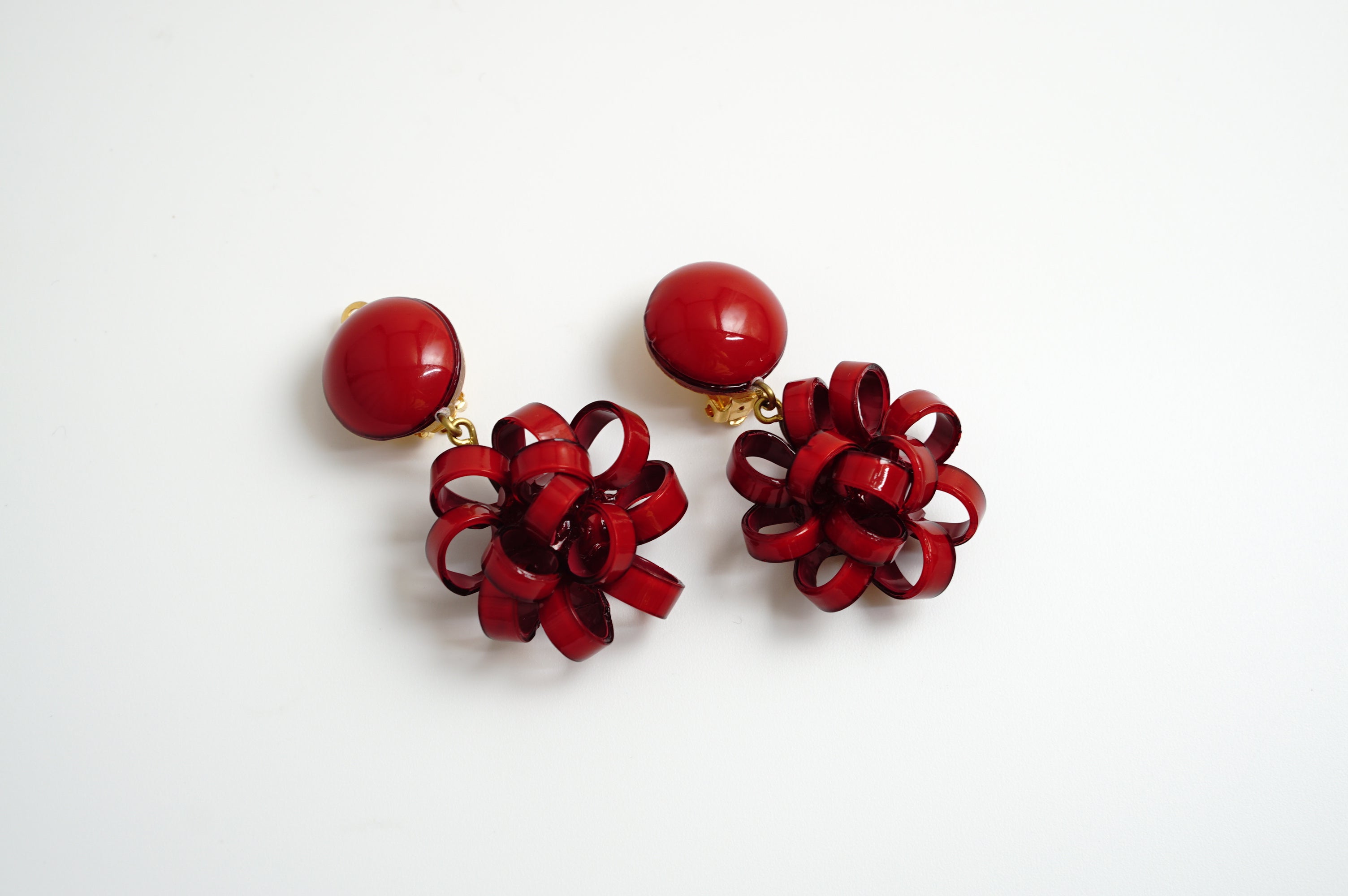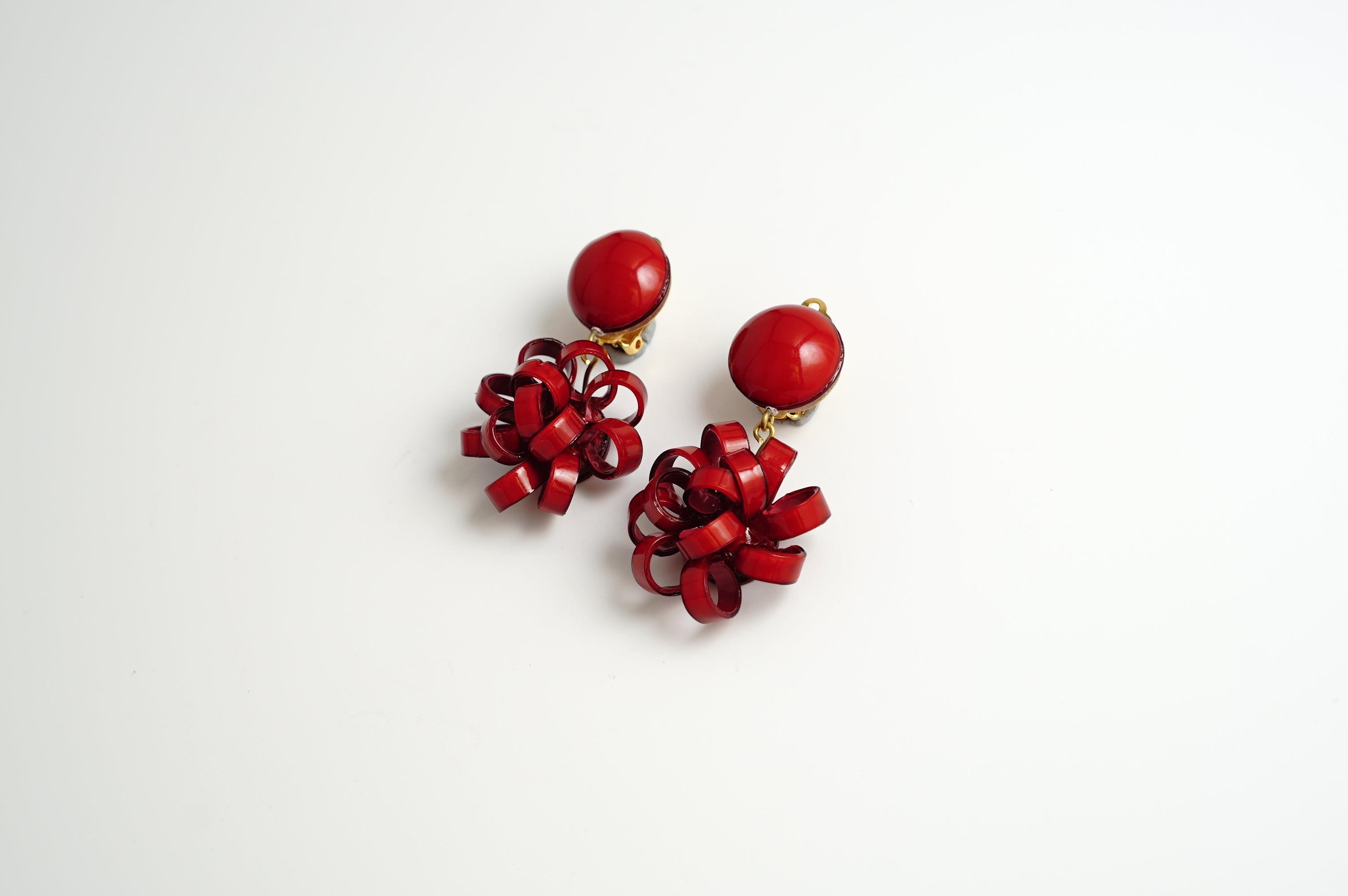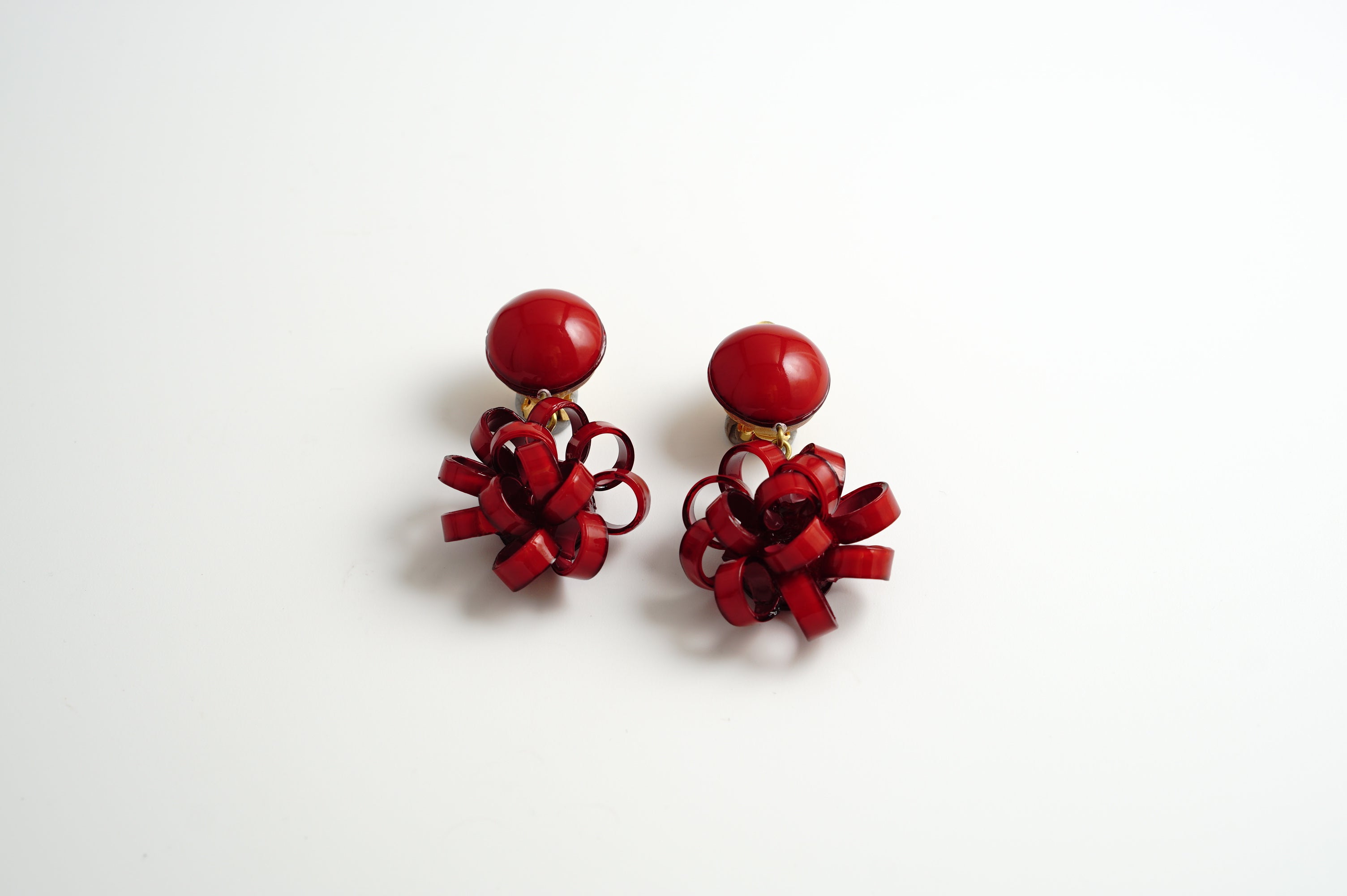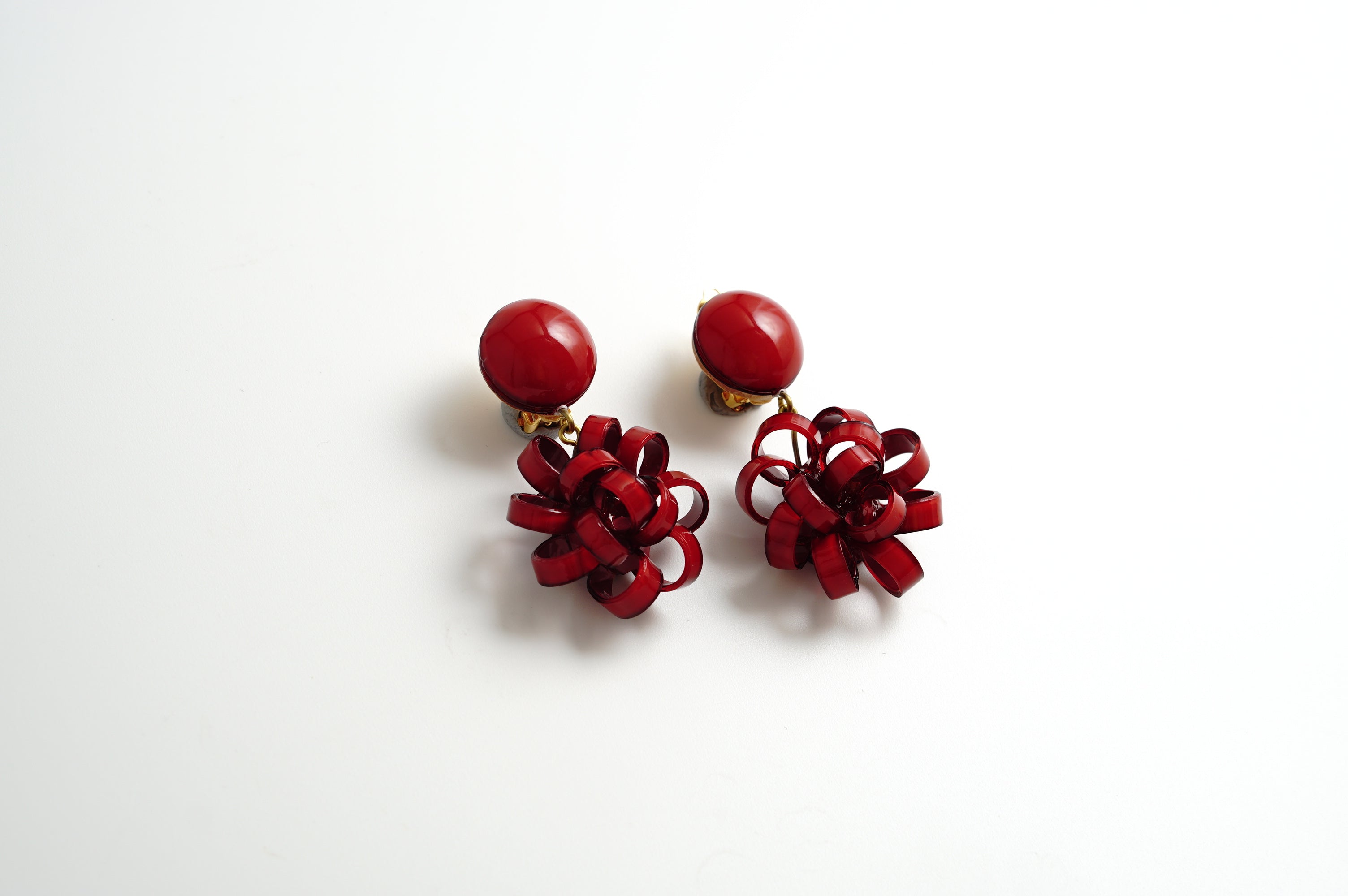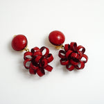 Clip Earrings「yureru Ribon(Swingin' Pom-pom)」Rouge