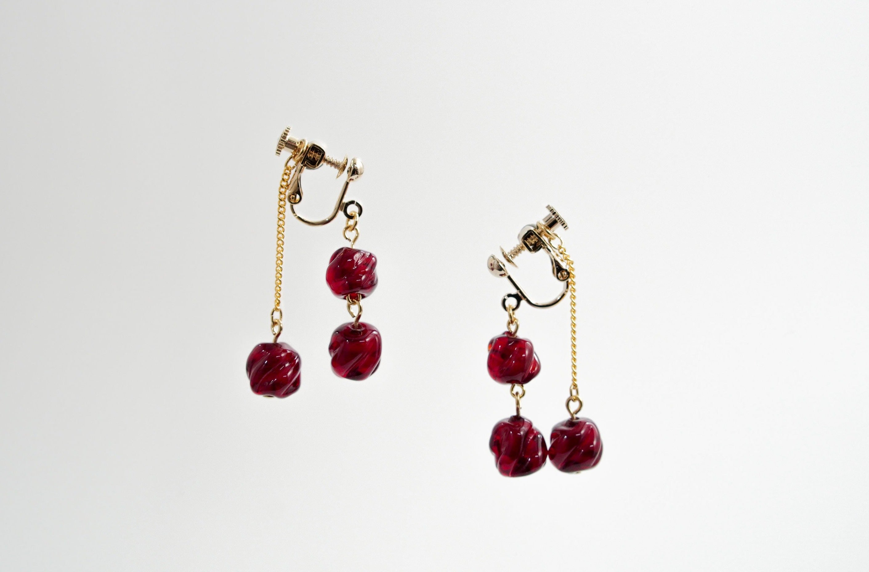 メローネビーズのたゆたうフォルムと光を含むガラスの美しさをそのまま残したイヤリングです。キャッチにもついたメローネビーズが、ゆらゆらと揺れることによって、どこから見ても美しい表情をみせてくれます。