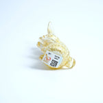 今作は私たちのデザインと彼からのアイデアのまさにコラボレーションによって生まれました。たっぷりかかった24金箔が、お正月らしいめでたさを演出してくれます。前に出した小さな手で、幸福をもたらしてくれそうです。