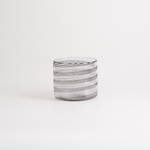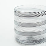 白と黒のガラス棒を用い捻じりながら吹き広げ、くるくるとしたスパイラル模様が美しいグラス。