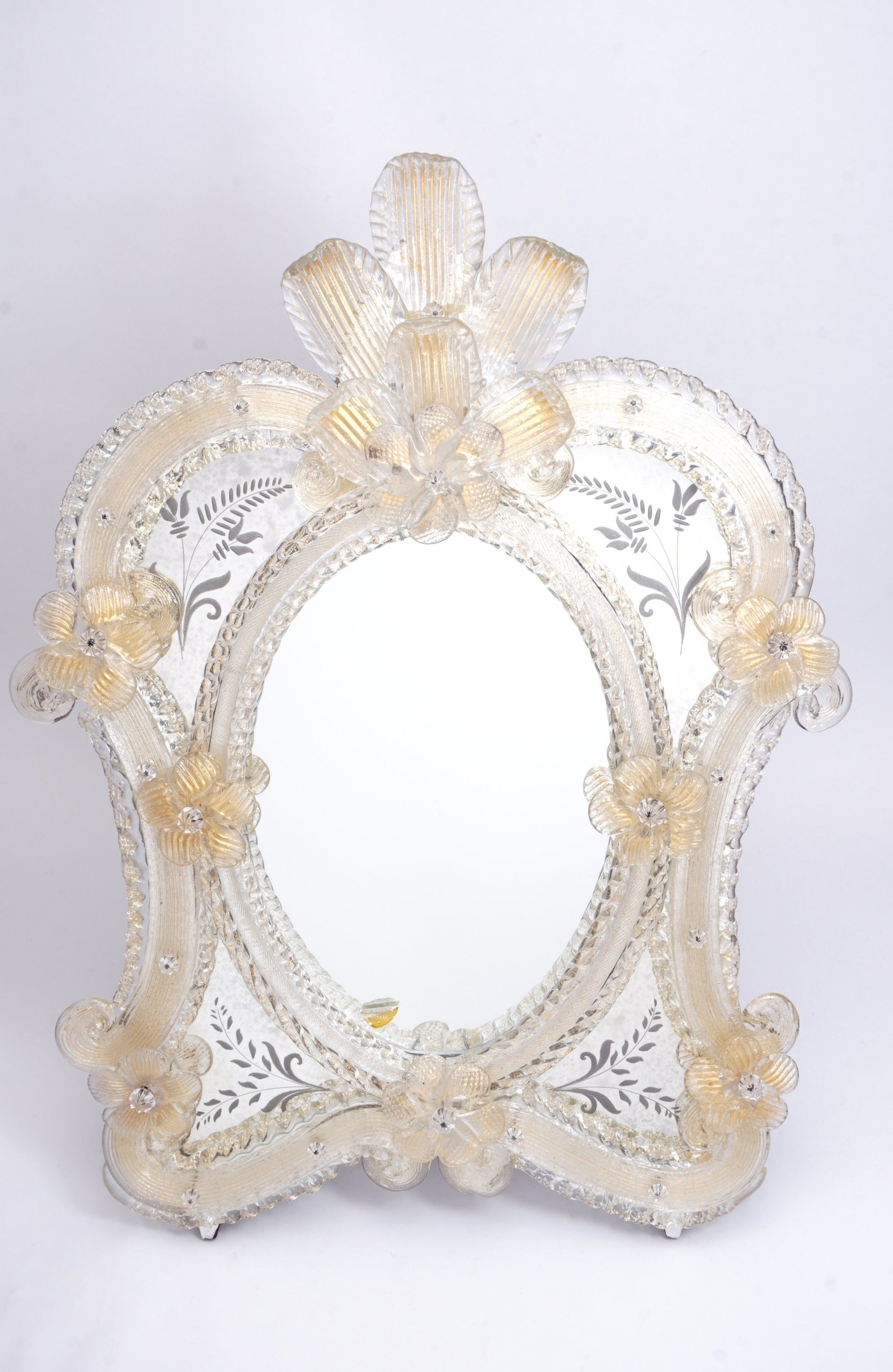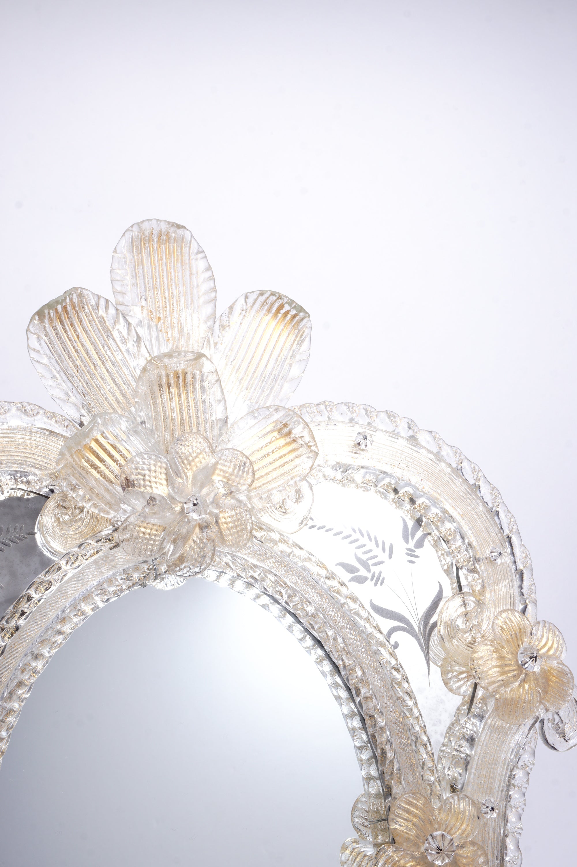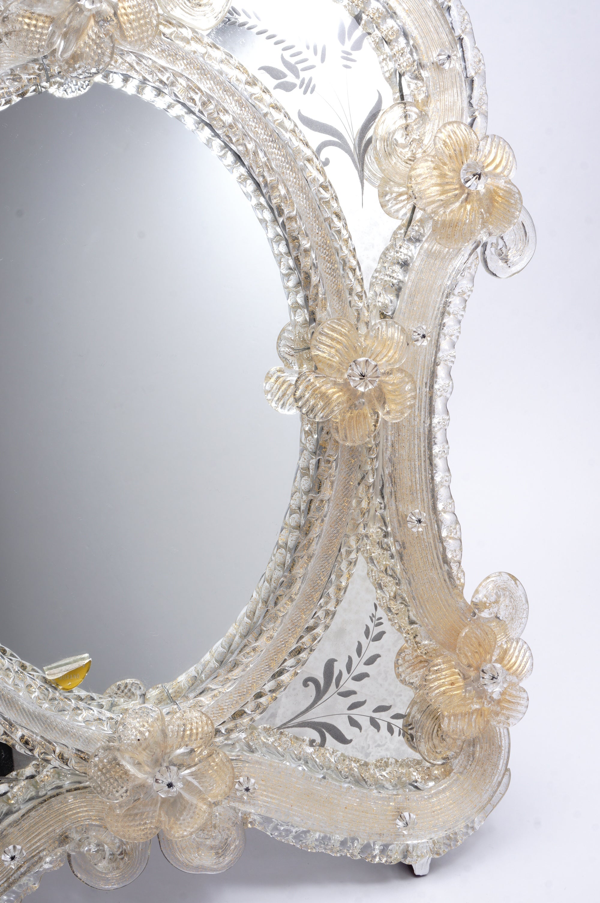 ムラーノガラスの鏡『金の野に咲く花』