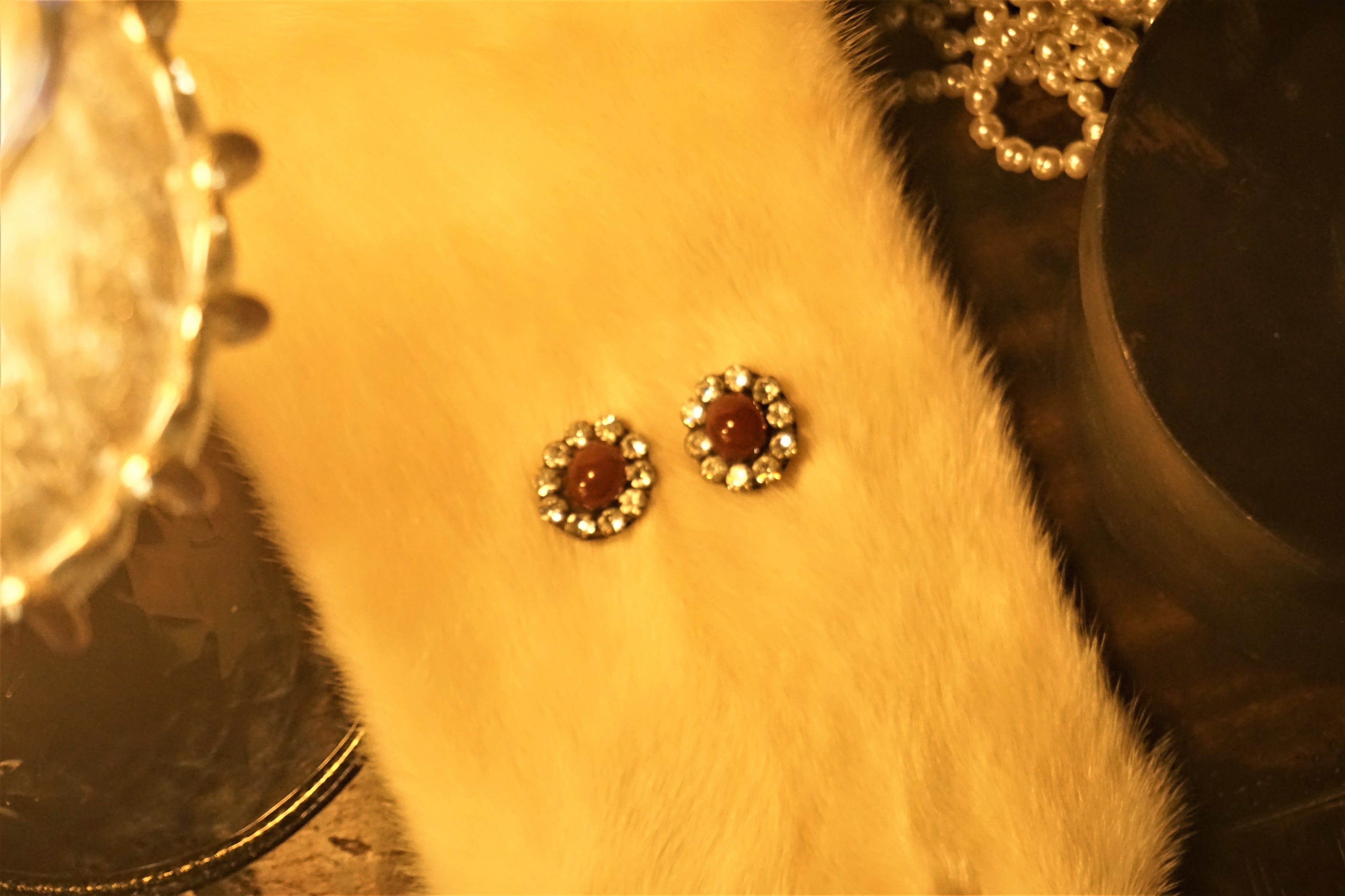 CHANEL ルビー・ラインストーン イヤリング