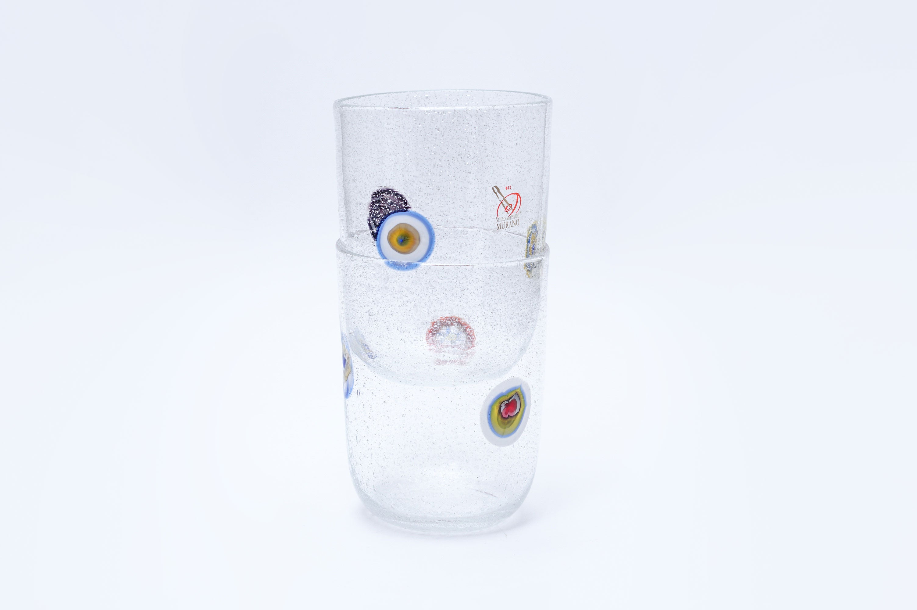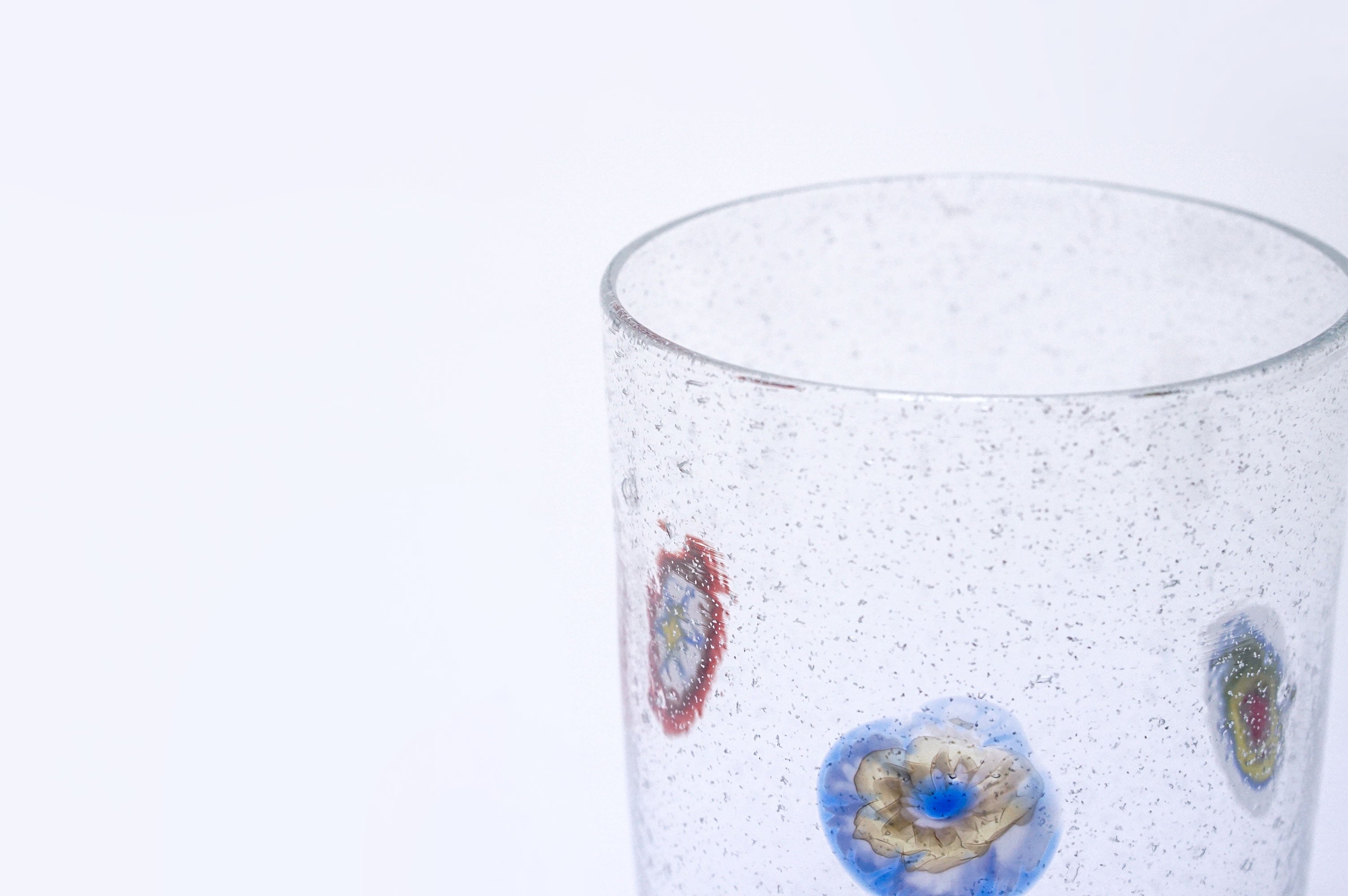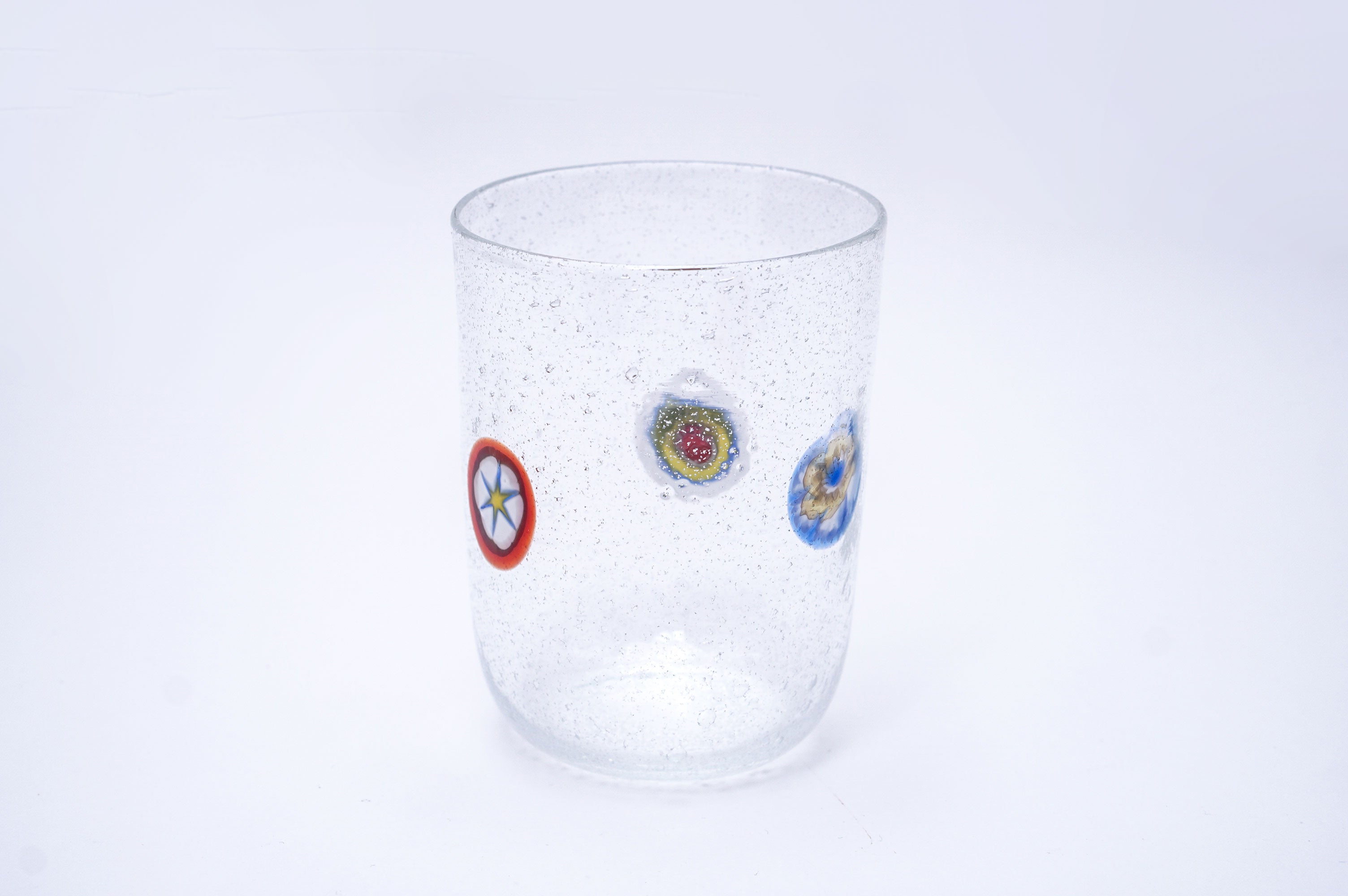 ムラーノガラス伝統技法ムリーネが入ったタンブラーは、ちょうど手におさまるサイズで、氷を入れたり、普段使いするのに怖くない適度な厚さがあります。