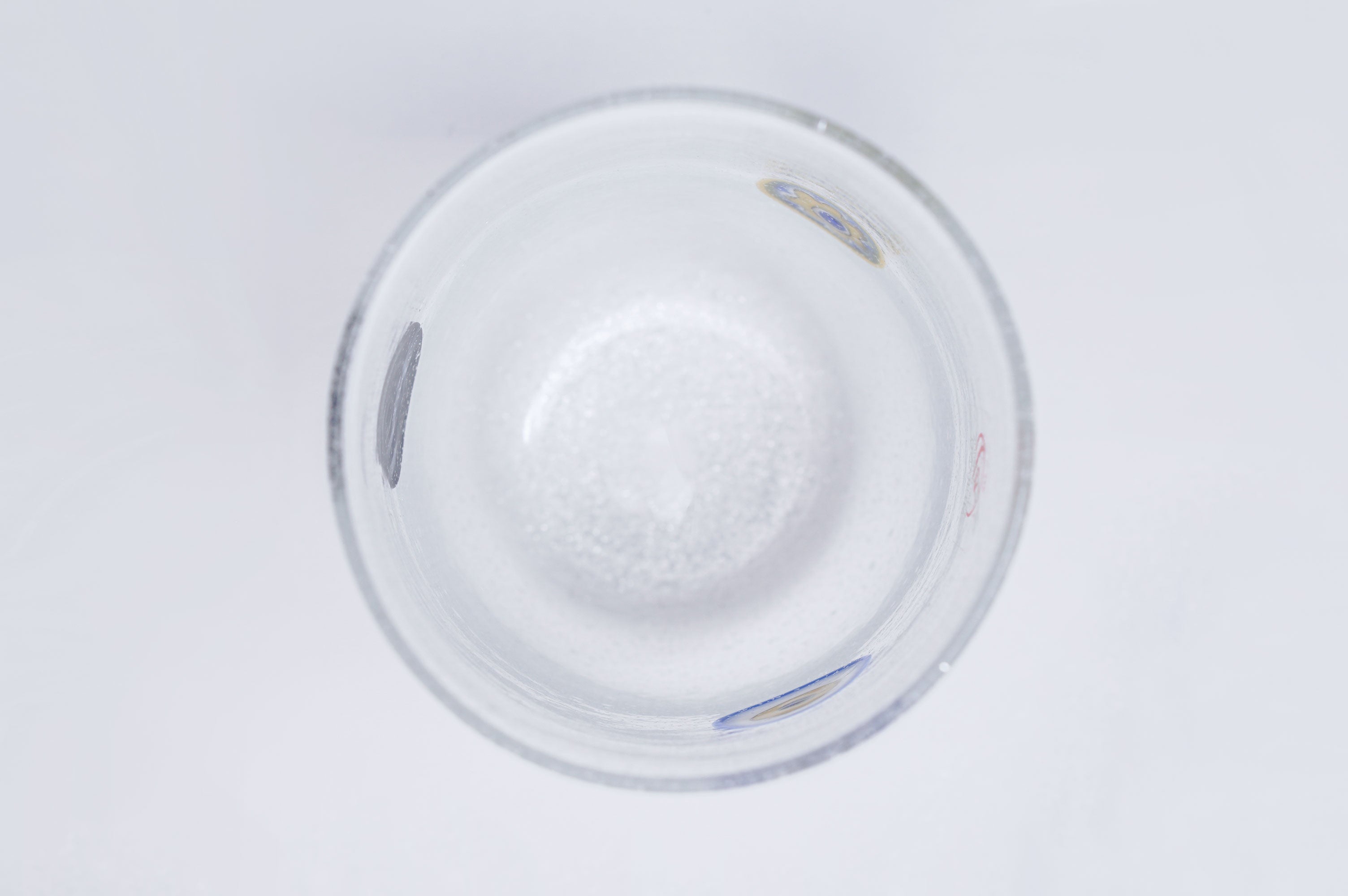 吹きガラスにおいては、制作途中に発生する小さな気泡や黒点、底面にポンテ跡(吹き竿を外した際の凹凸)がある場合がございます。