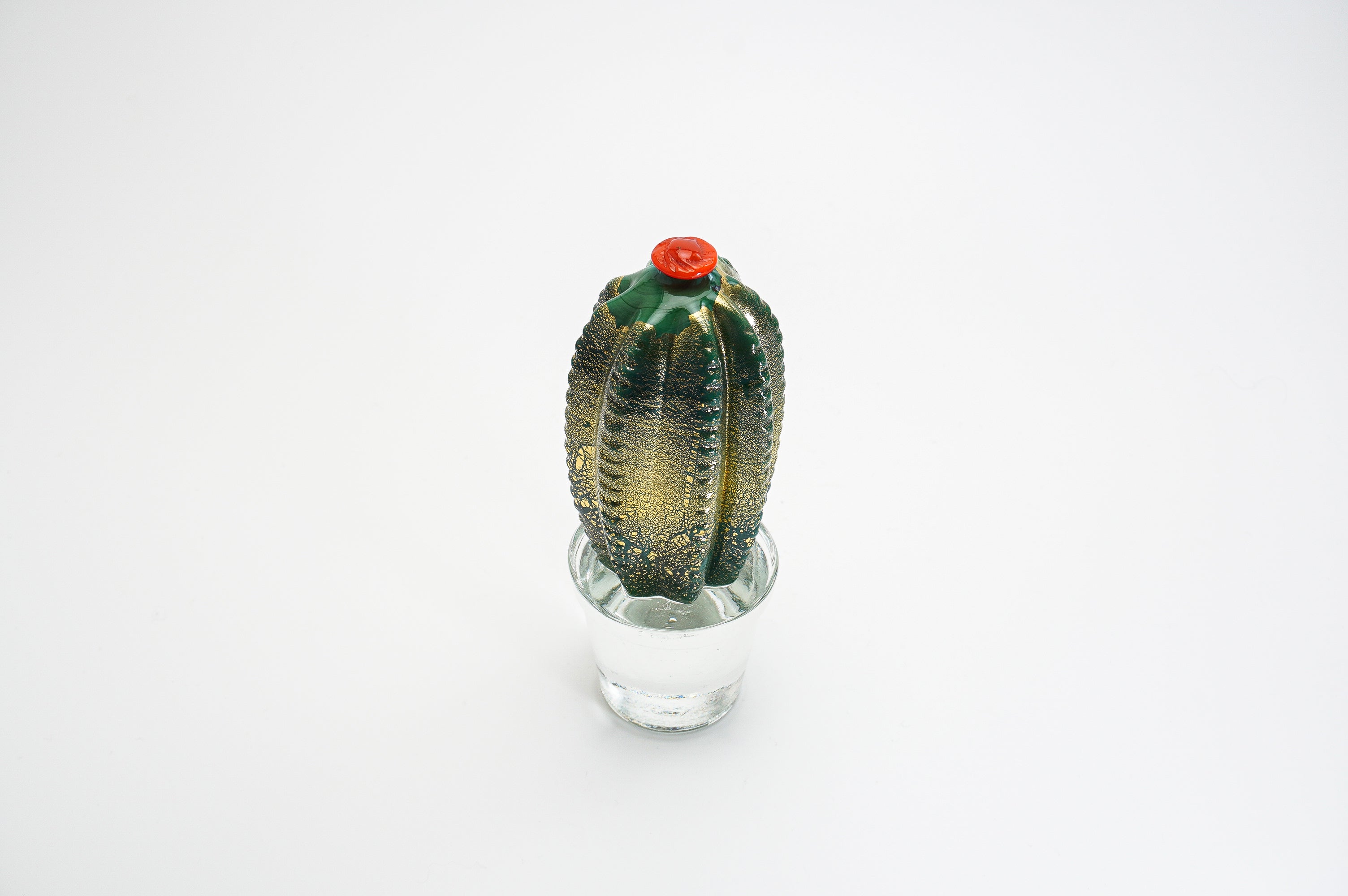 こちらはロレンツォ・フェロー工房が制作したオブジェ「サボテン」2種セットです。vaseはガラスがたっぷり使われていますが、その他が宙吹きで吹かれています。周りには24金箔をふんだんに使い、サボテンの表情を表現しています。