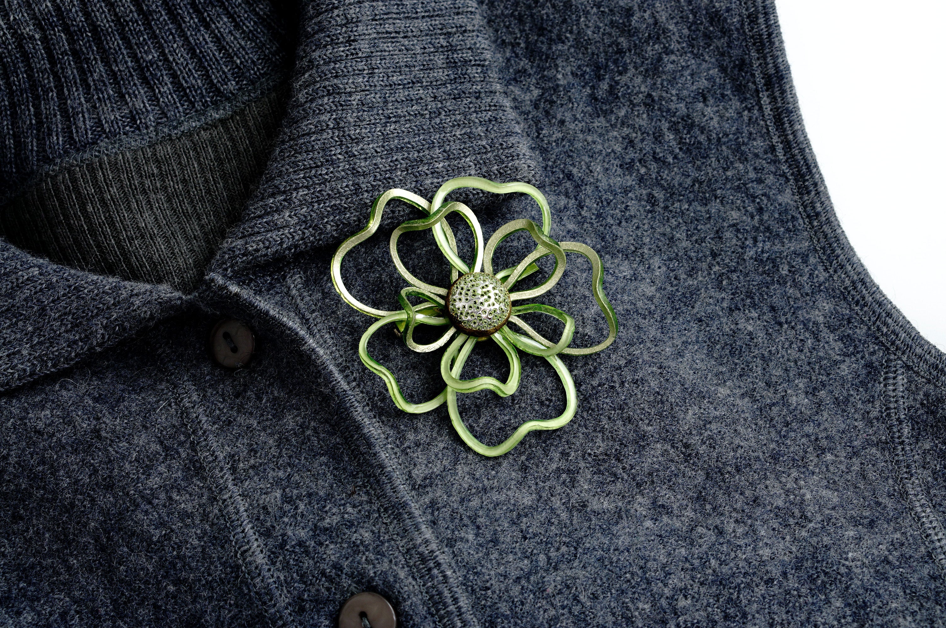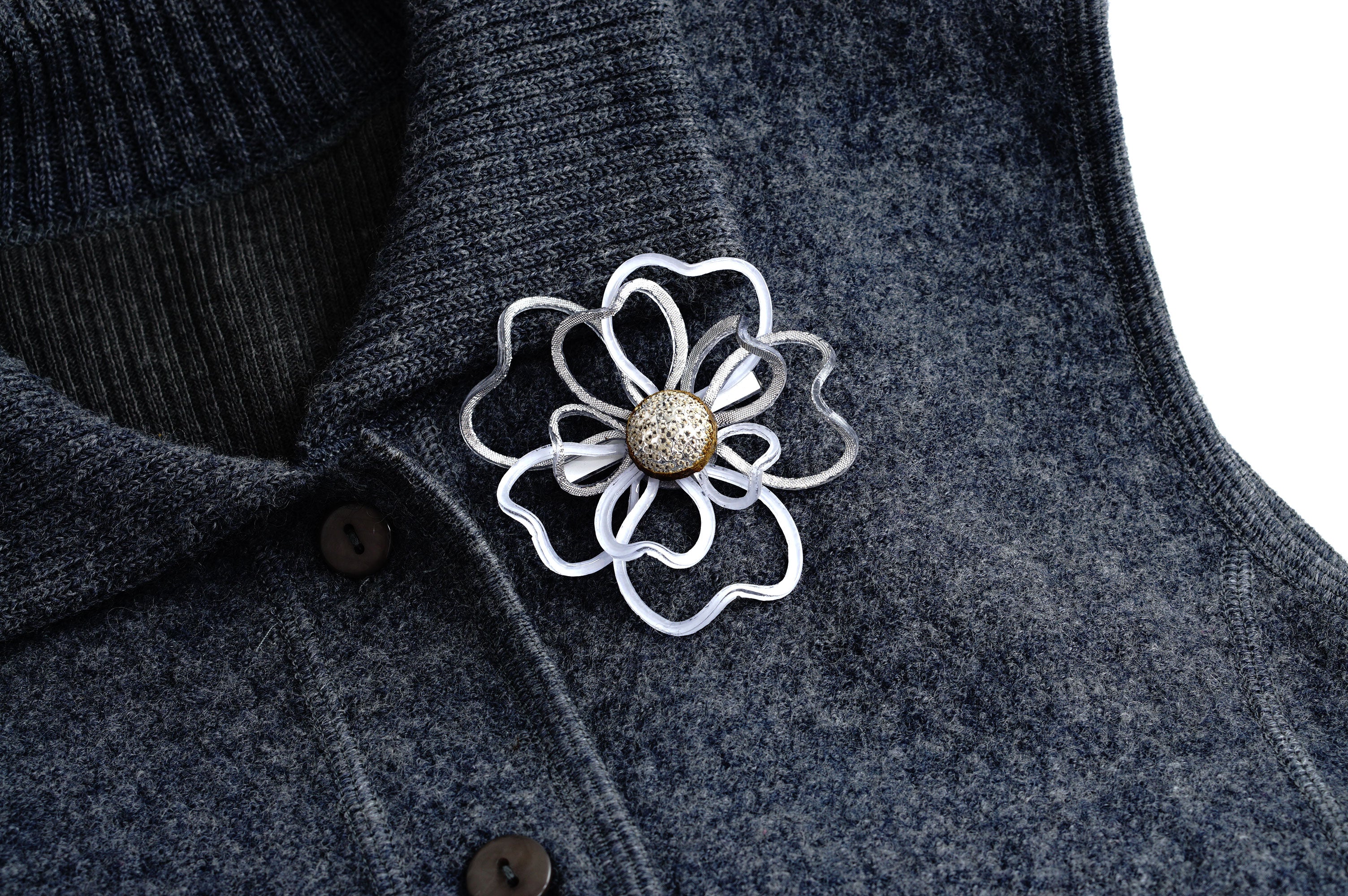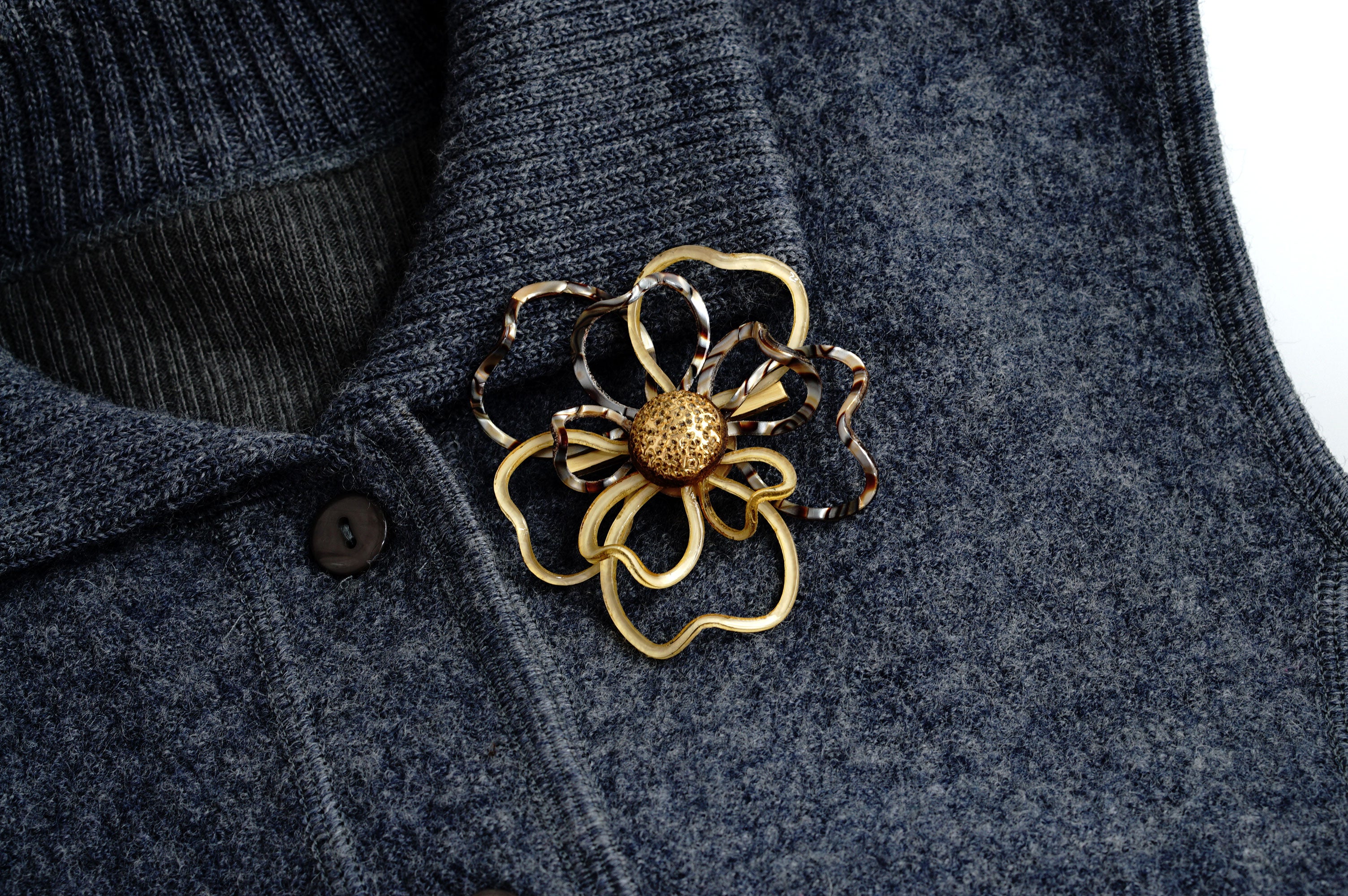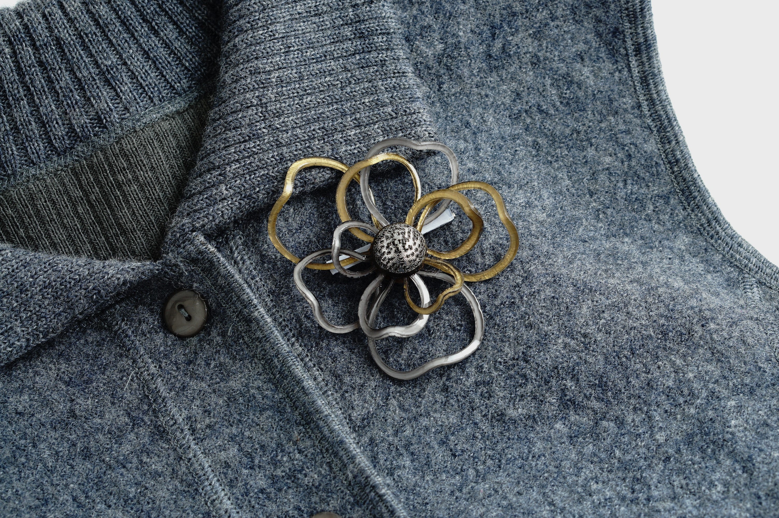 大振りながらも繊細さのあるこのブローチは、とっても軽いため夏の装いにも、冬のコートやニットに着けてもかわいくあなたに寄り添います。