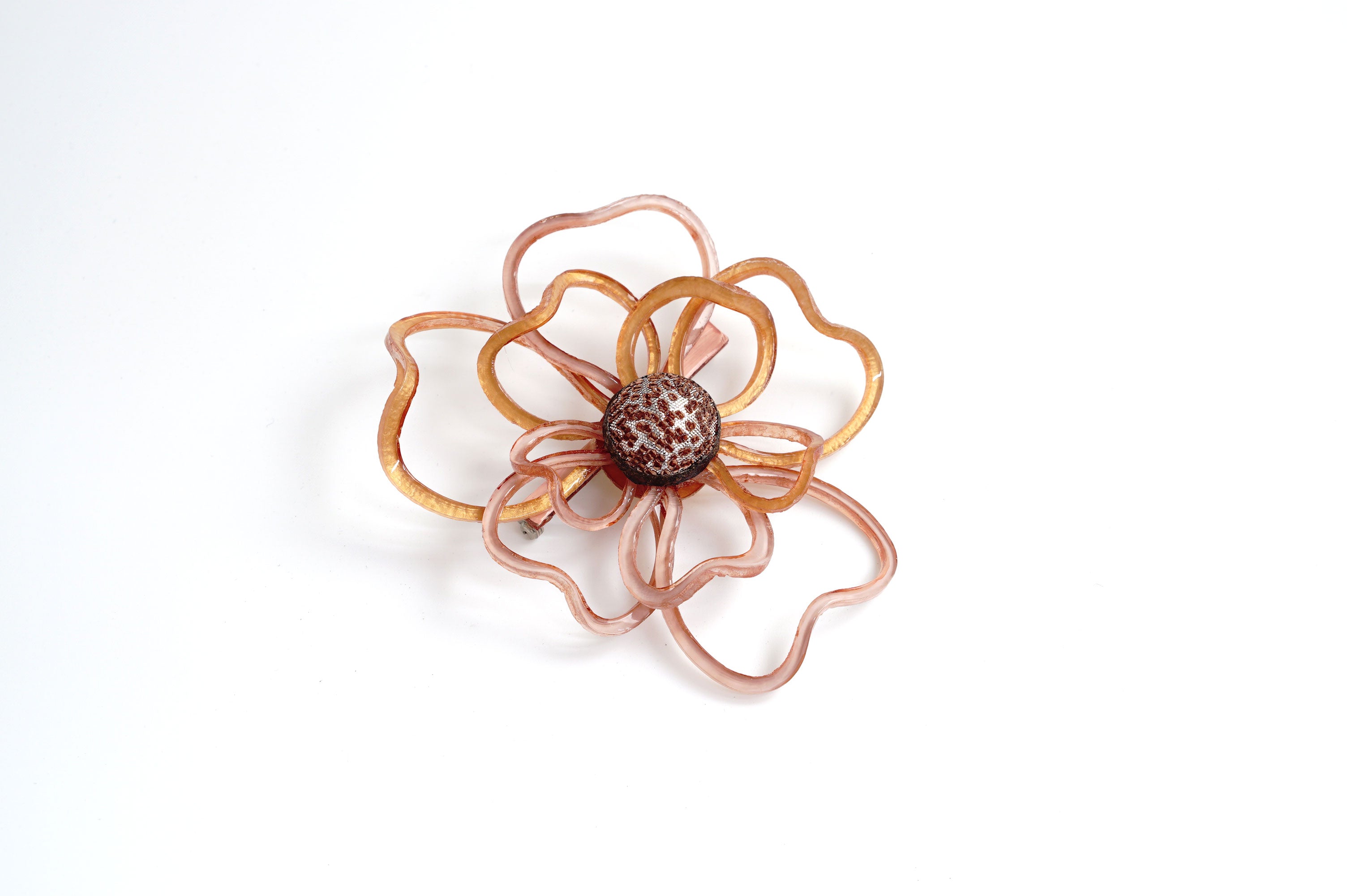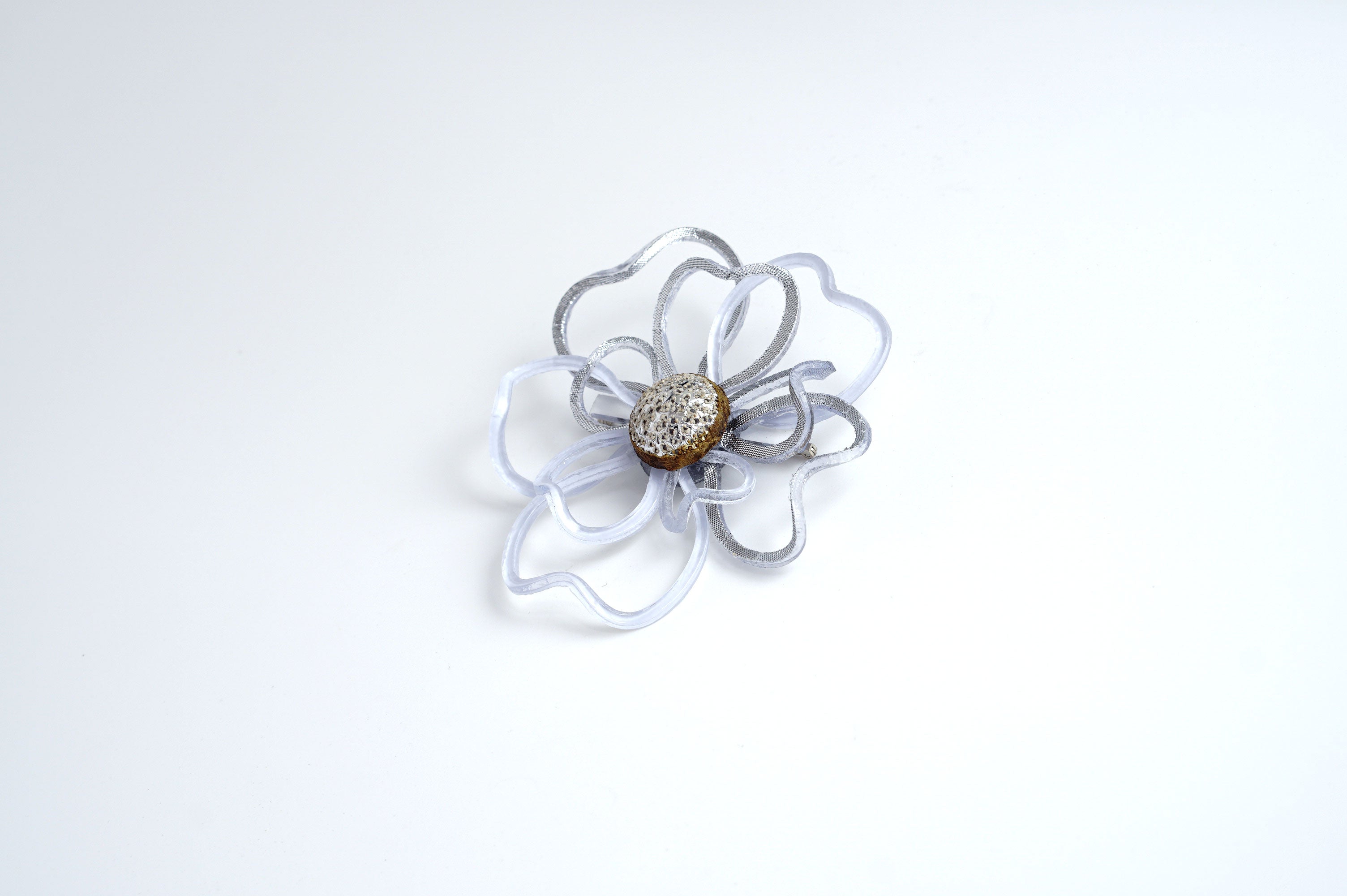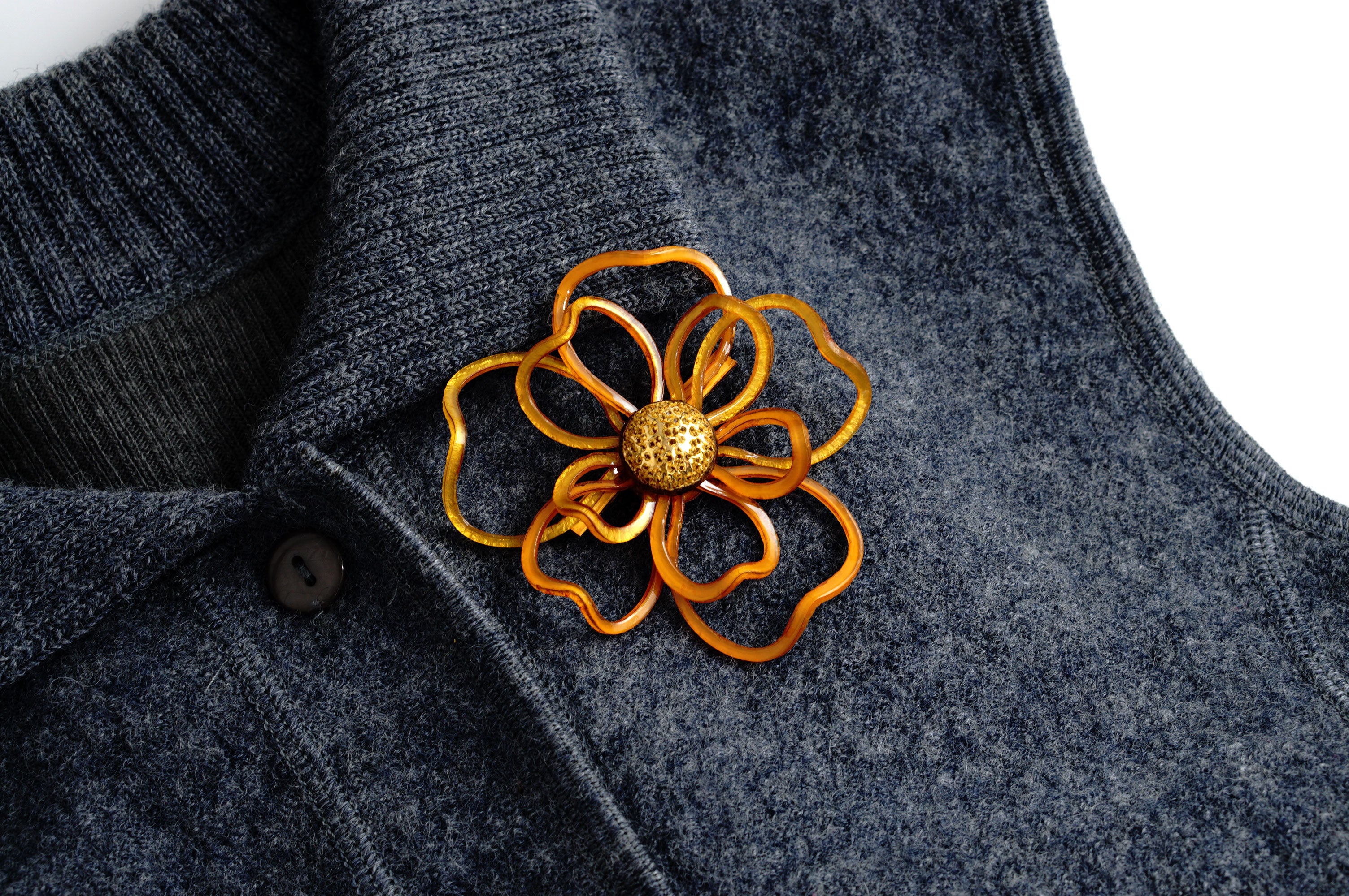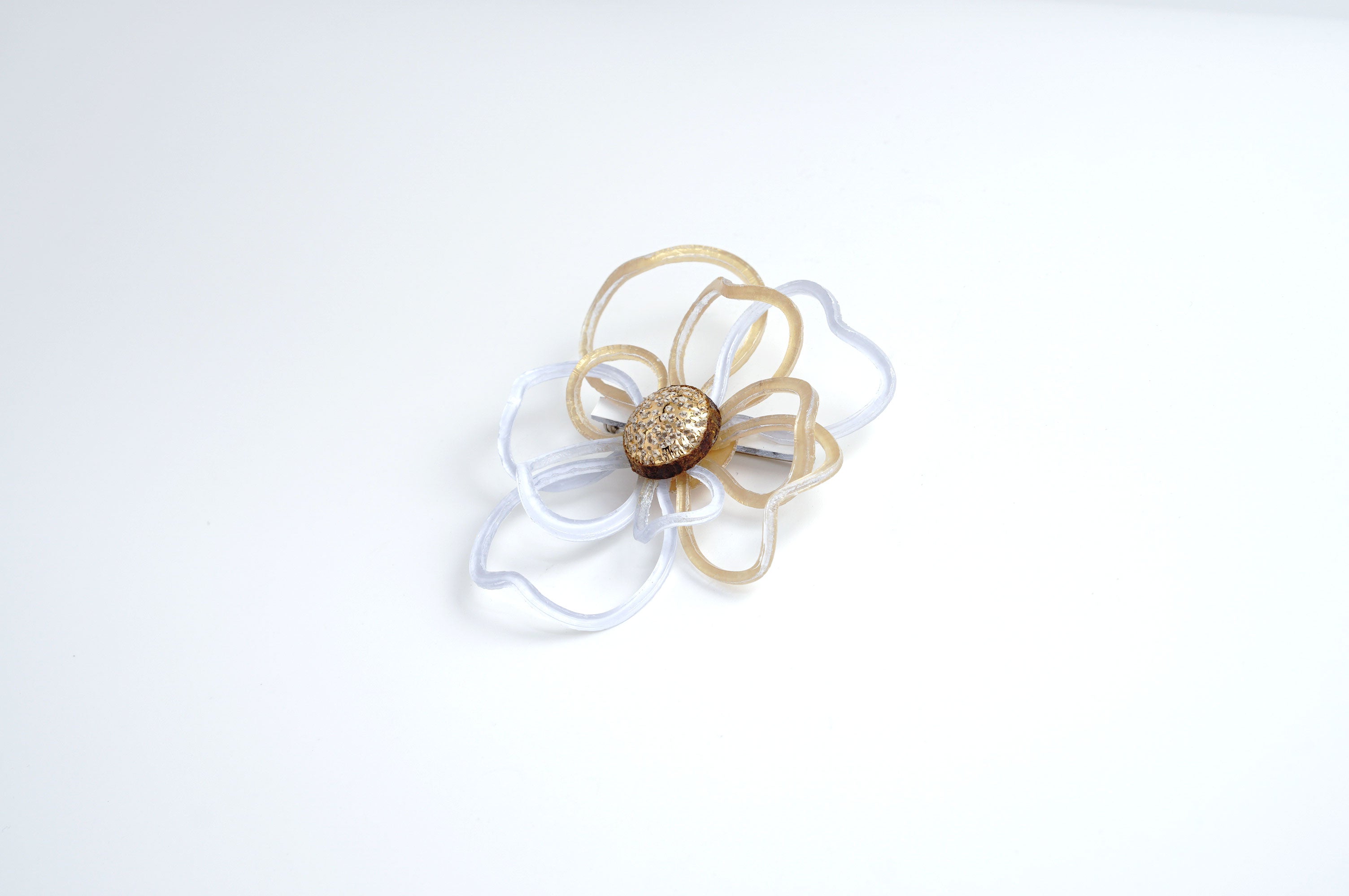 大振りながらも繊細さのあるこのブローチは、とっても軽いため夏の装いにも、冬のコートやニットに着けてもかわいくあなたに寄り添います。