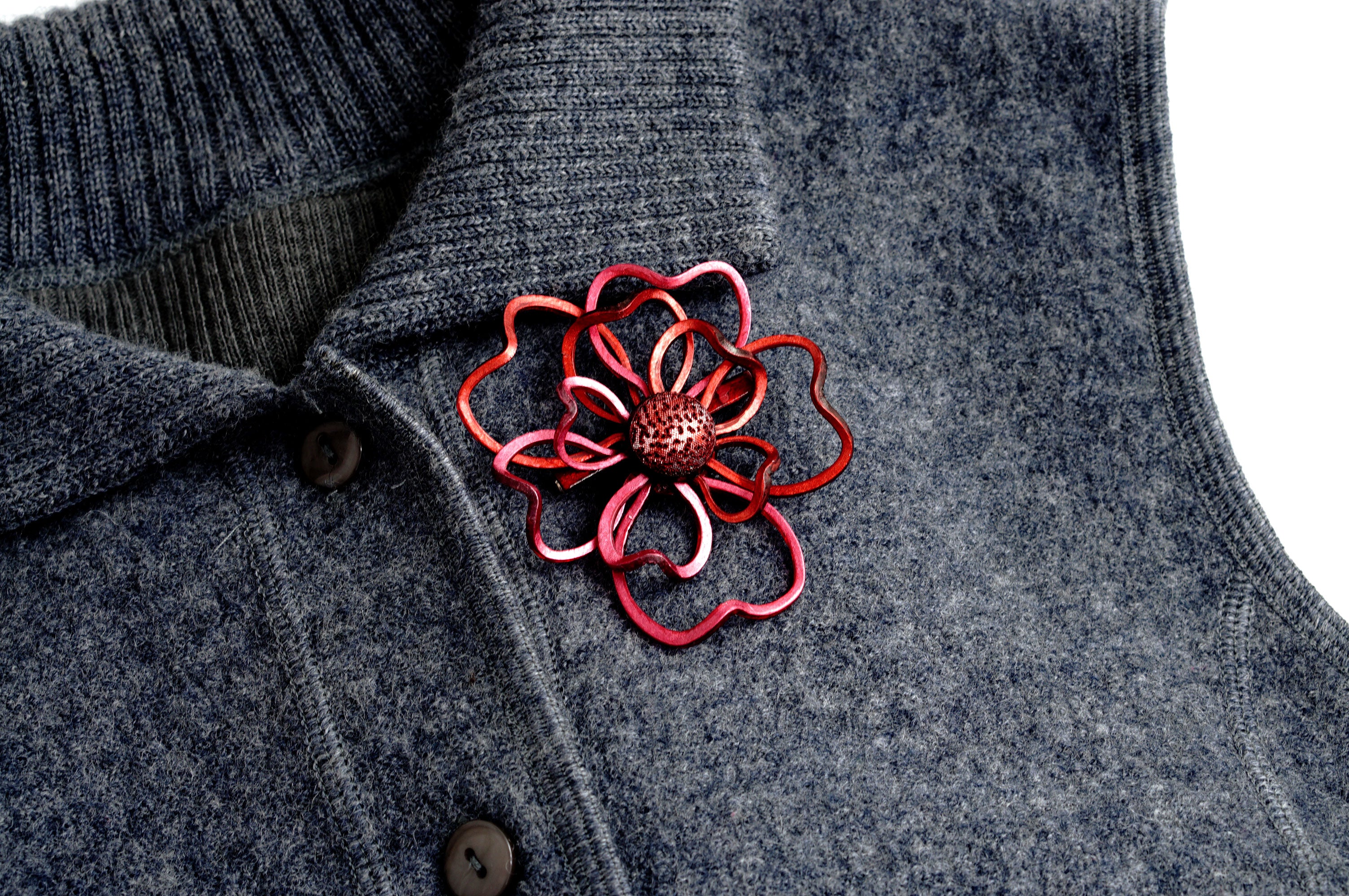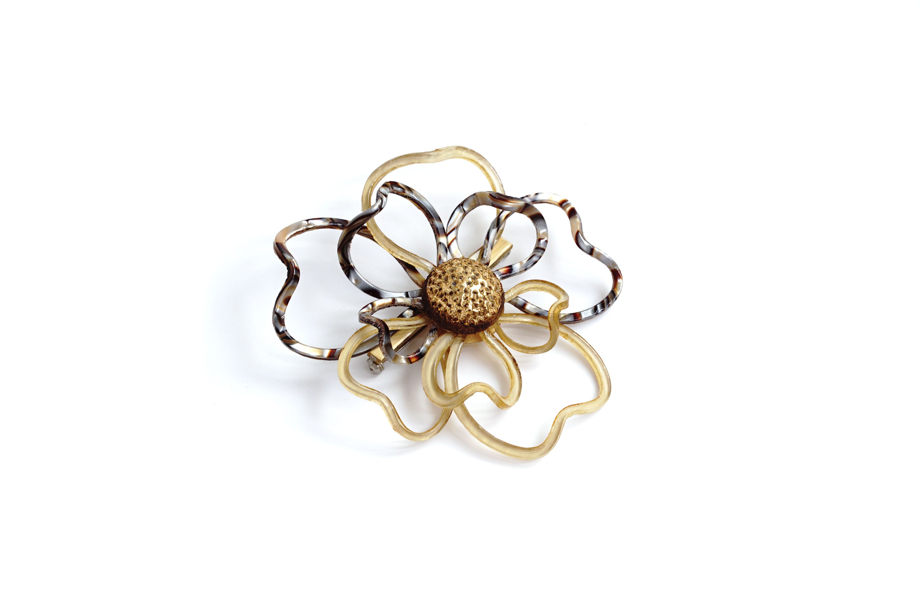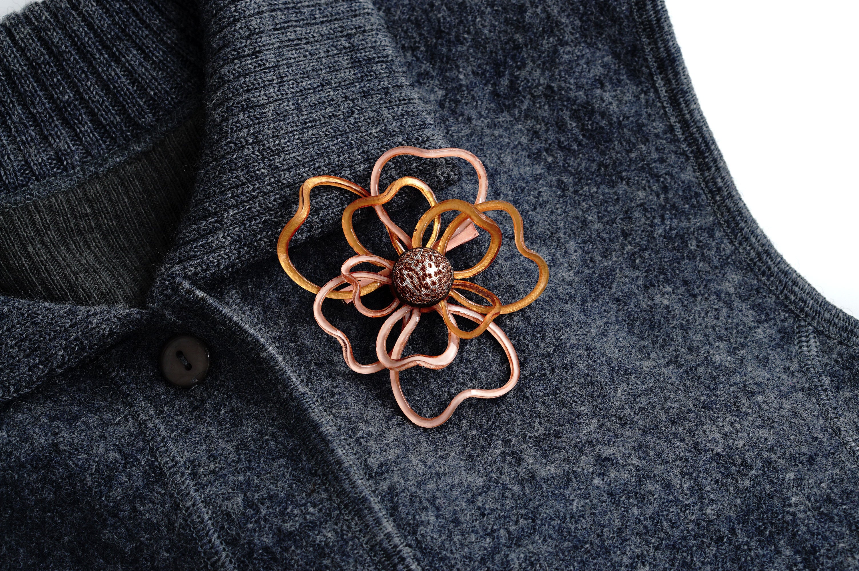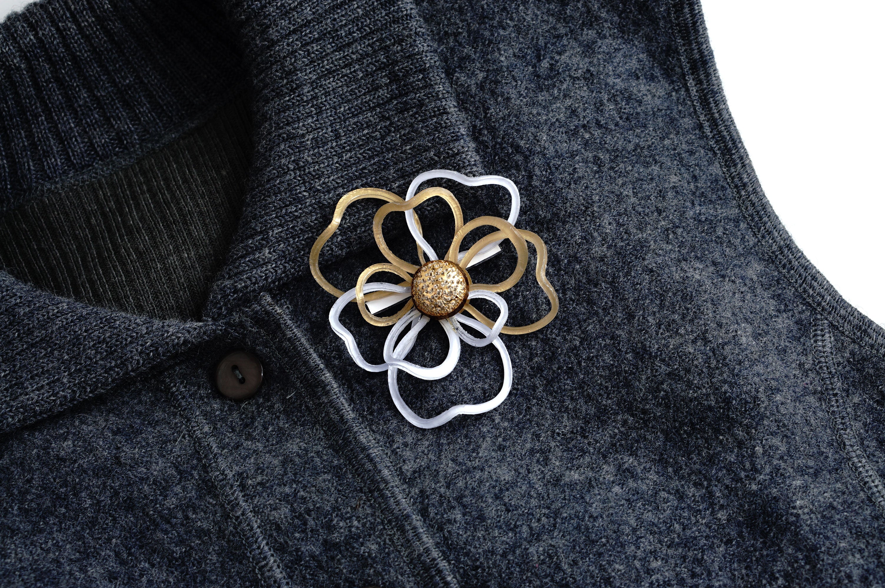 大振りながらも繊細さのあるこのブローチは、とっても軽いため夏の装いにも、冬のコートやニットに着けてもかわいくあなたに寄り添います。