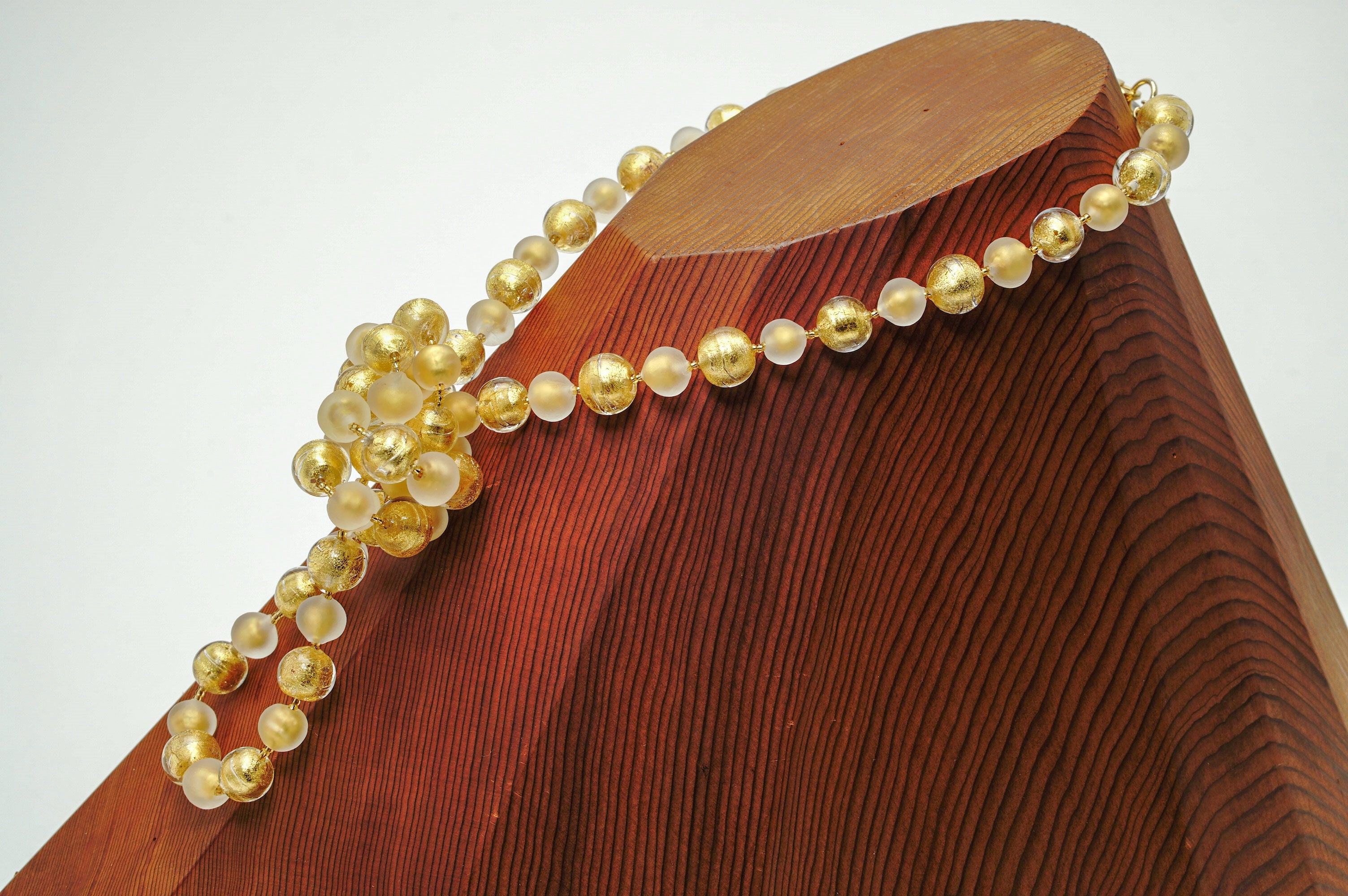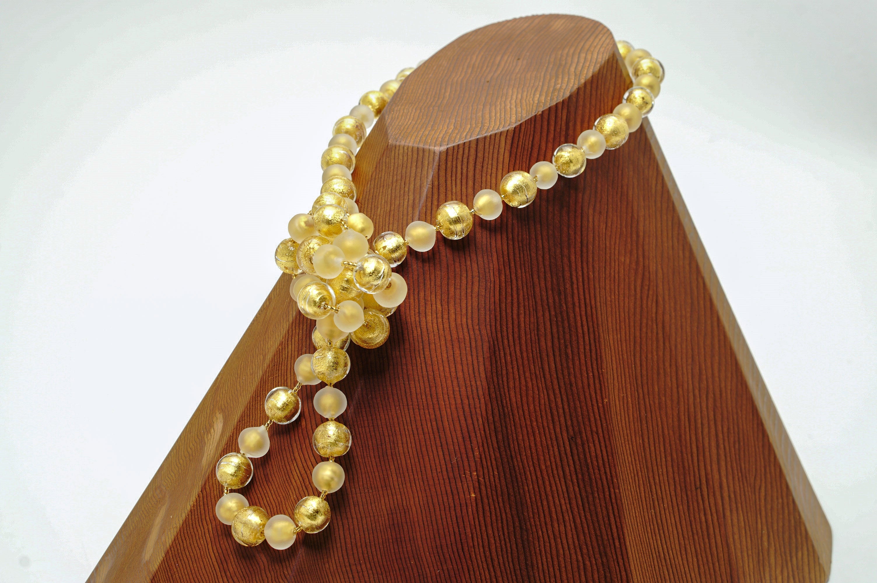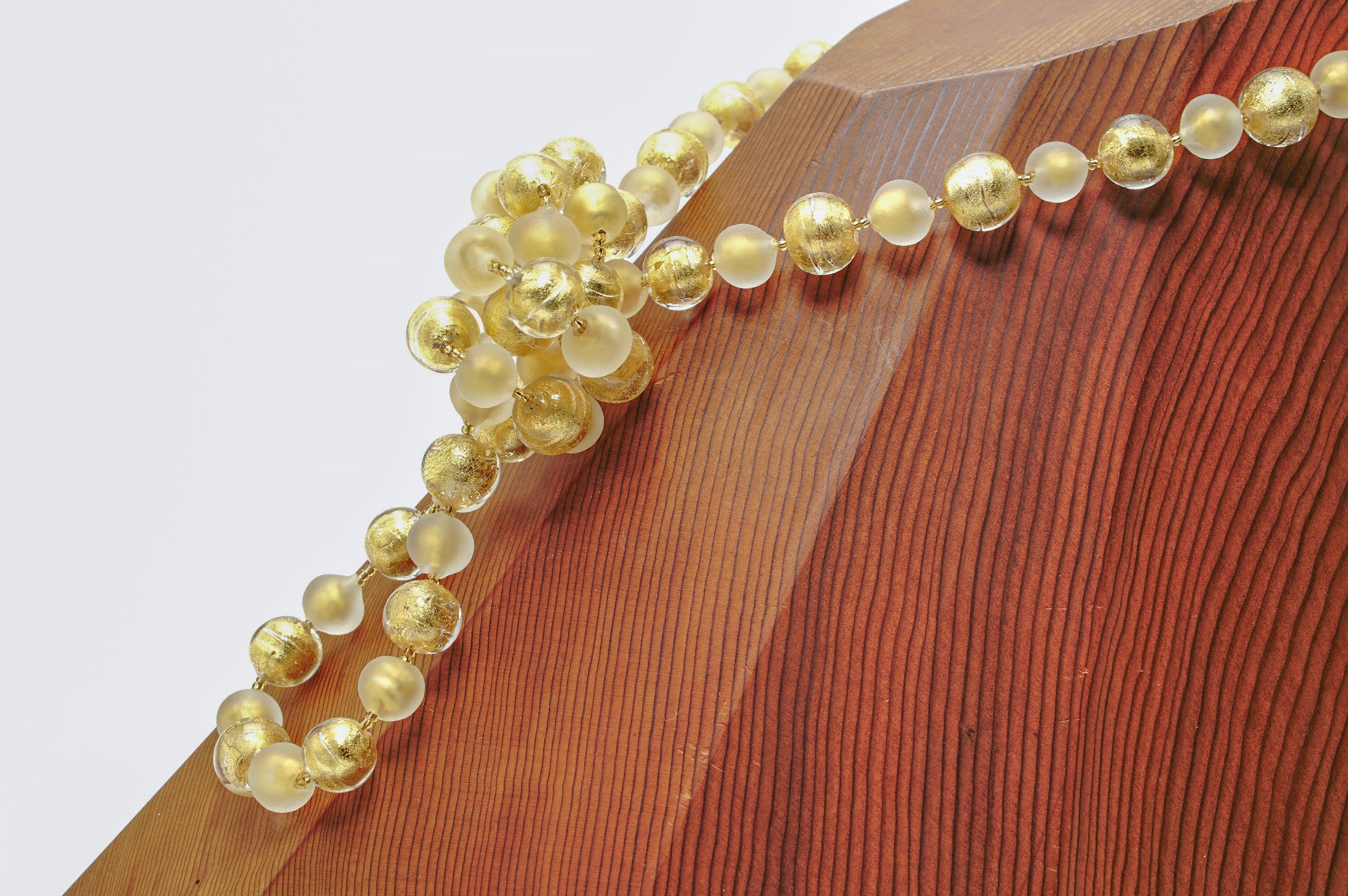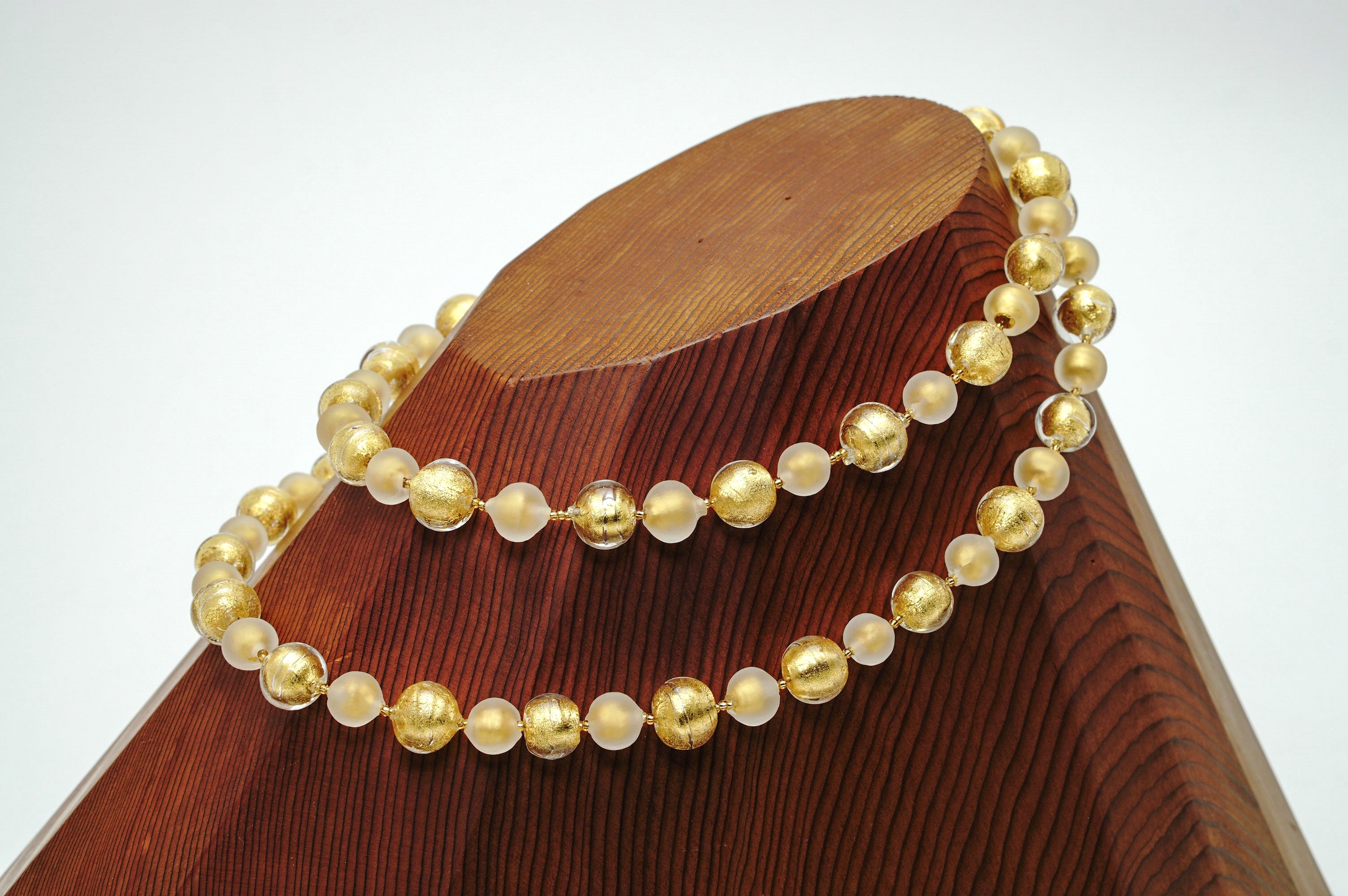 透明なガラスと金箔のみのビーズを組み合わせたとってもシンプルなネックレス。