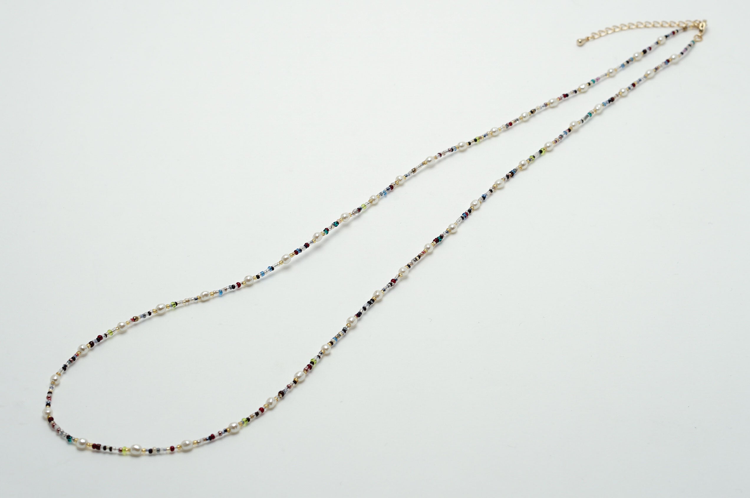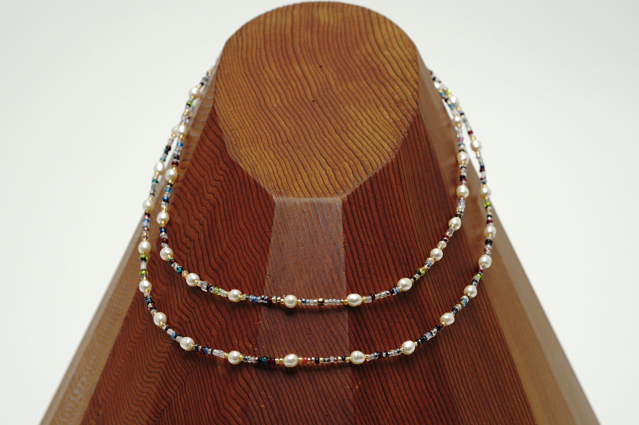 すっぽりと被りロングネックレスとしても、2連のショートネックレスとしてもお使いいただけます。