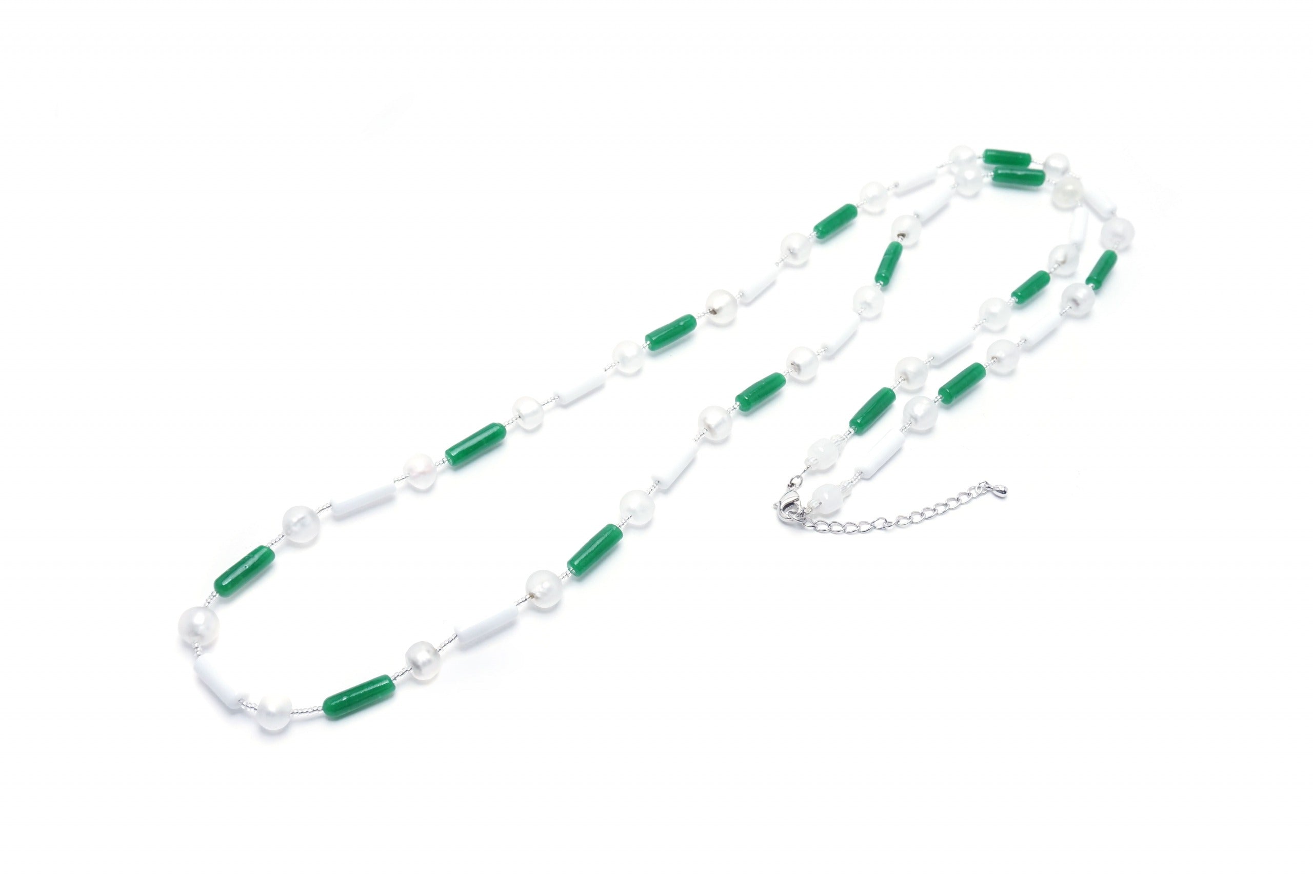 ロングネックレス「竹のおめかし」Bianco/Verde