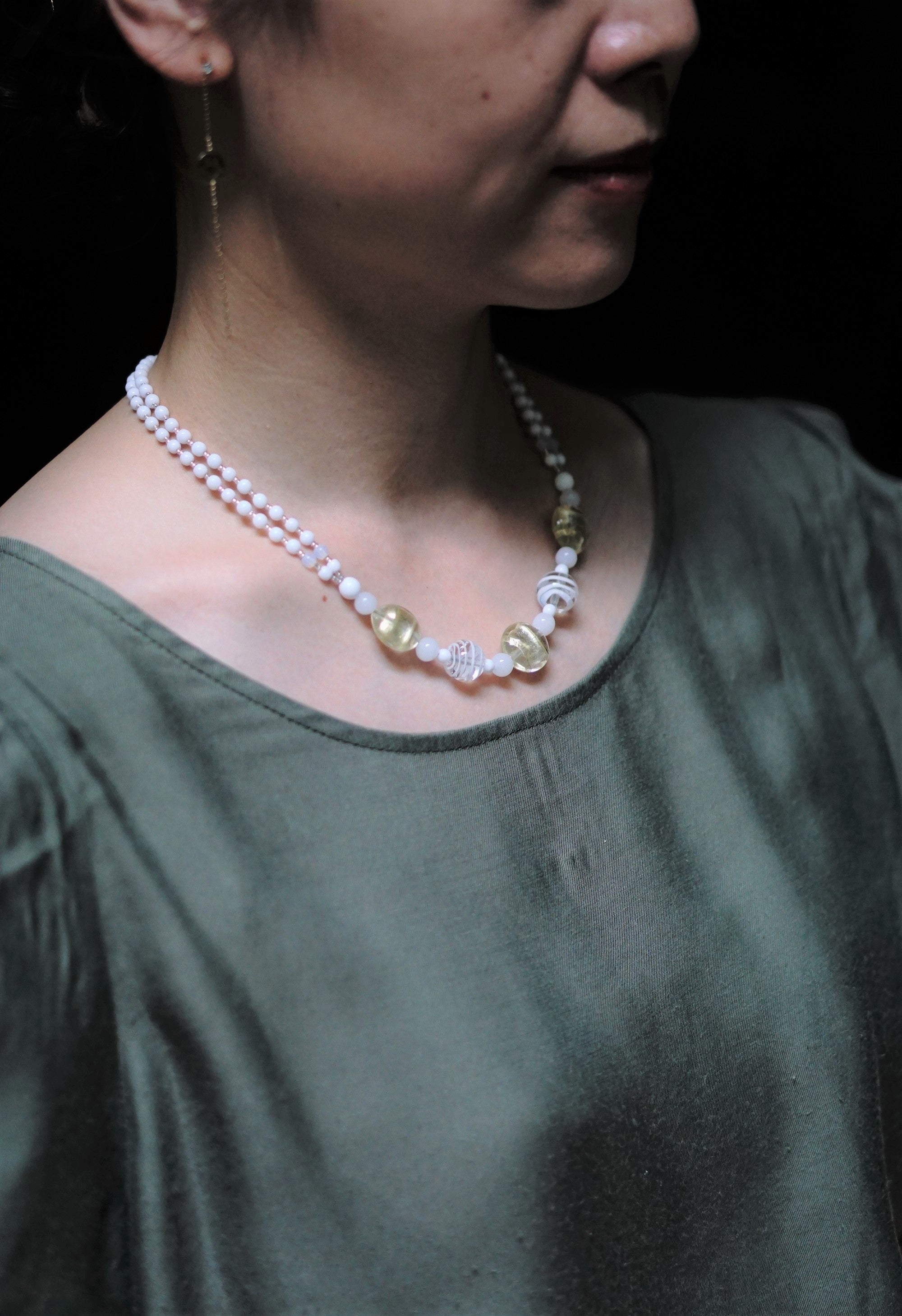 メインのビーズは「ファスチア」と呼ばれていて、当ブランド監修の小瀧千佐子がマエストロと相談しデザインしました。