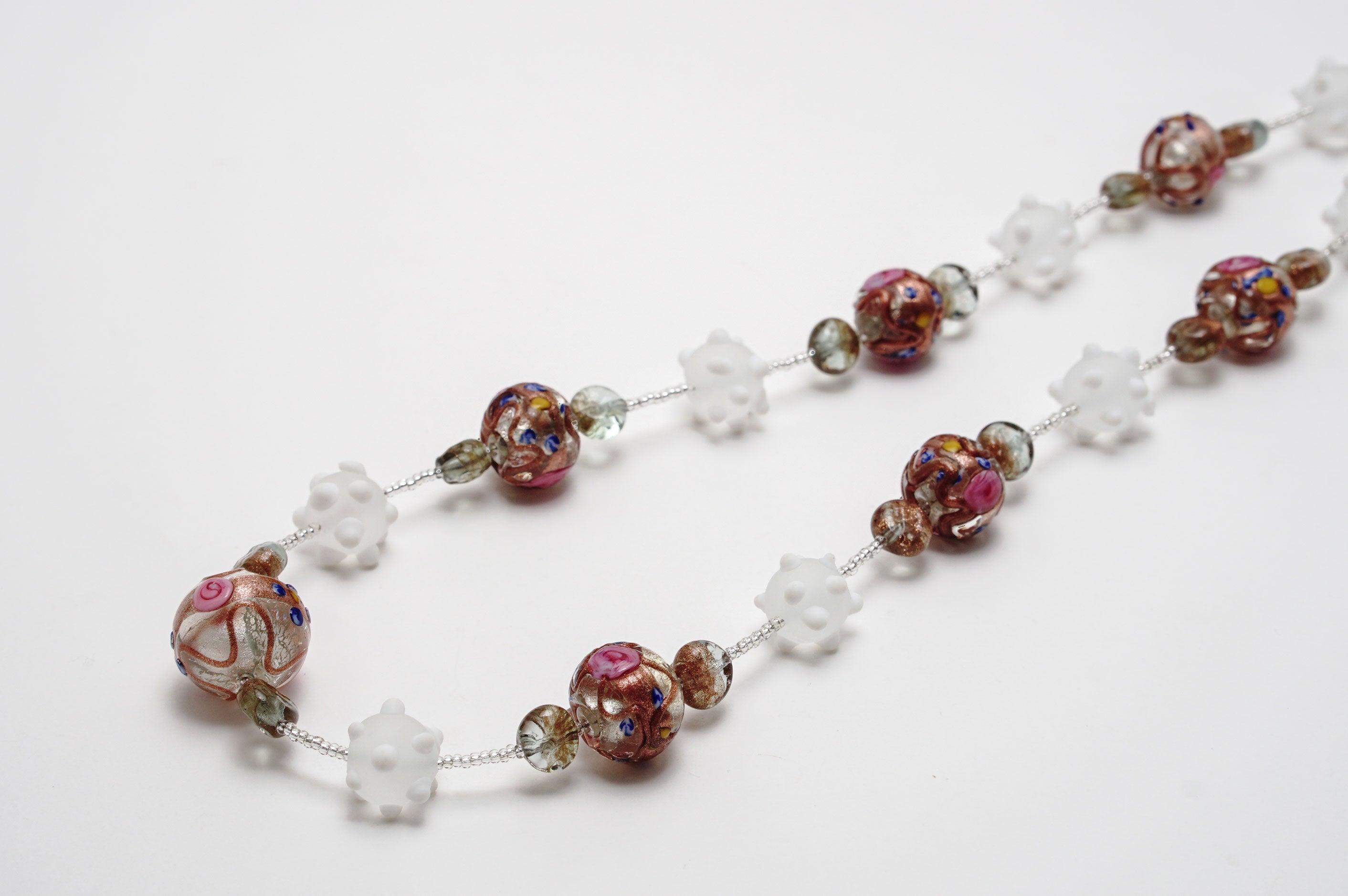 ヴェネチアで伝承される伝統的な技法により、ひと粒ひと粒職人の手によって、丁寧に作られたビーズです。