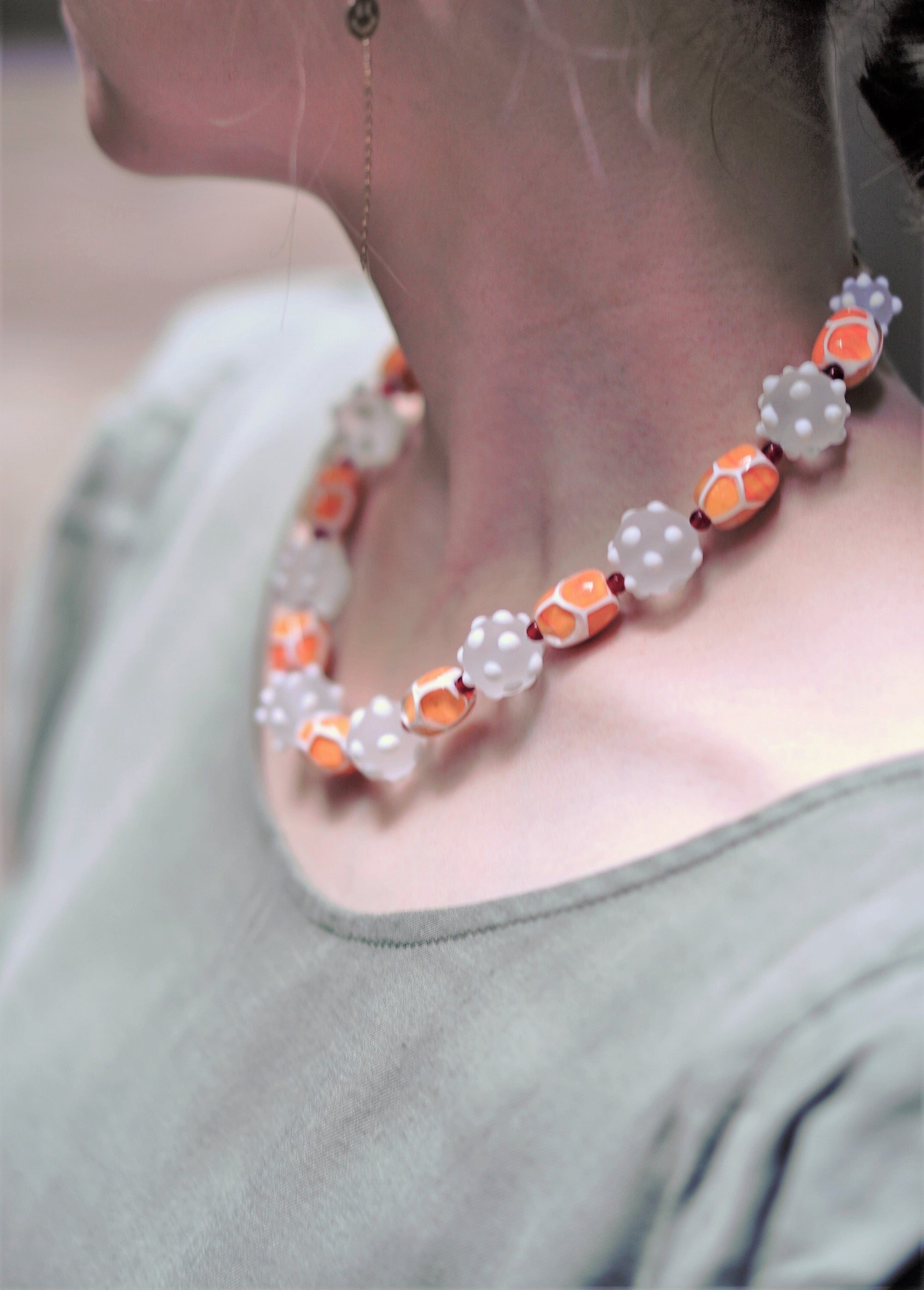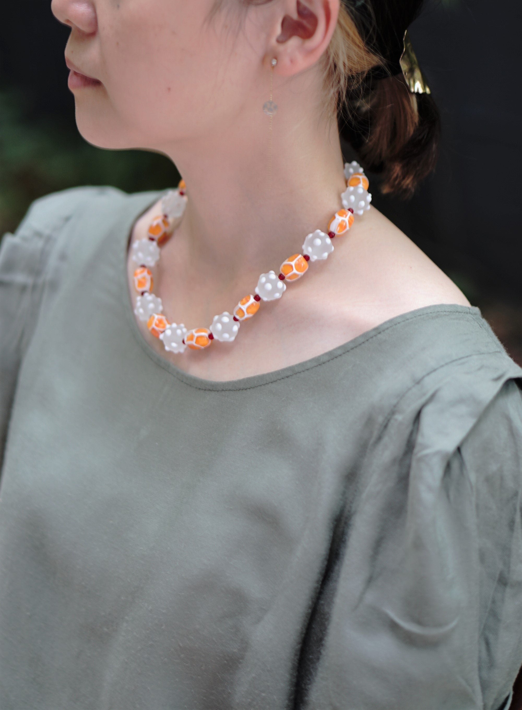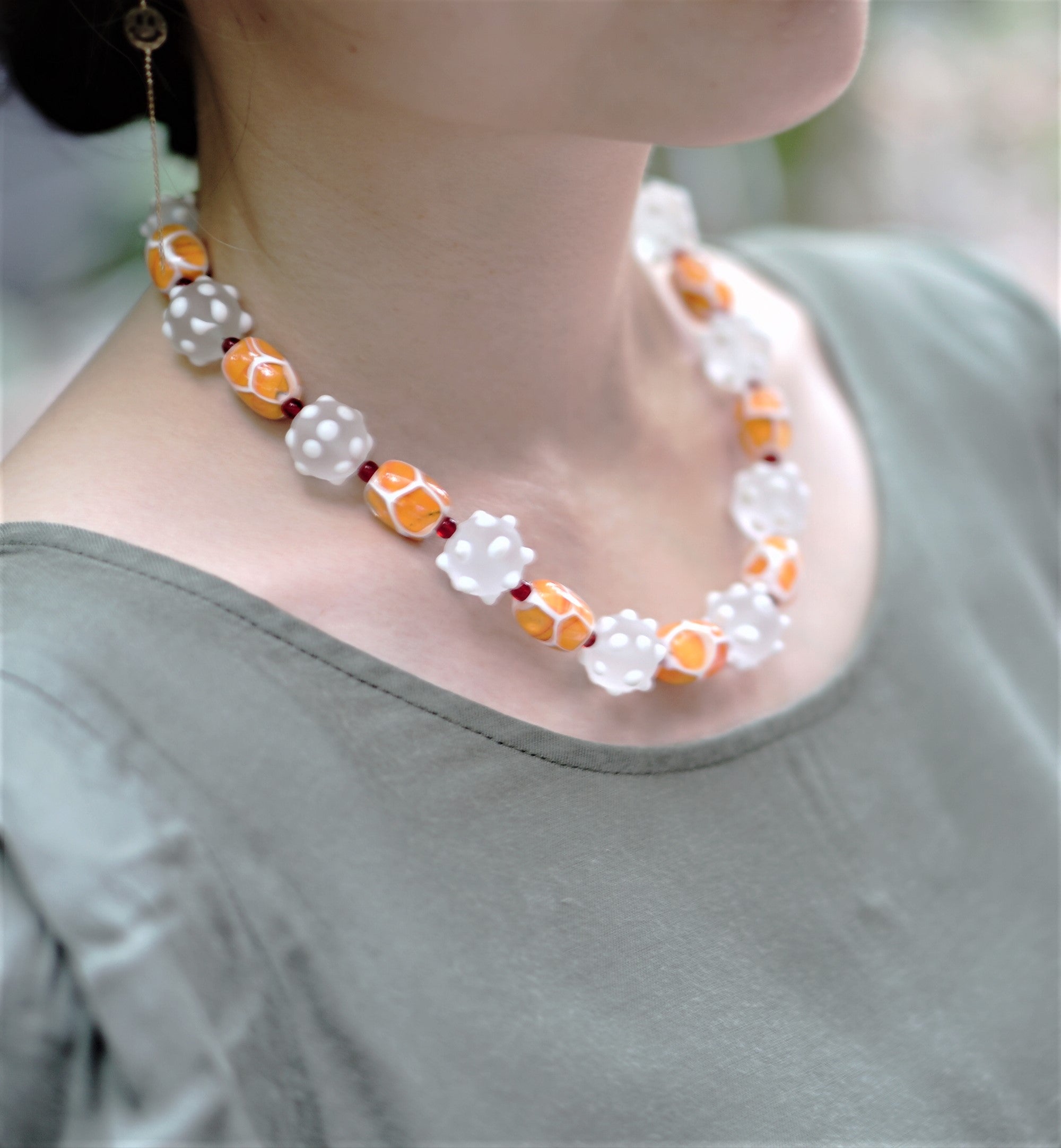 ネックレス「橙の白い花」