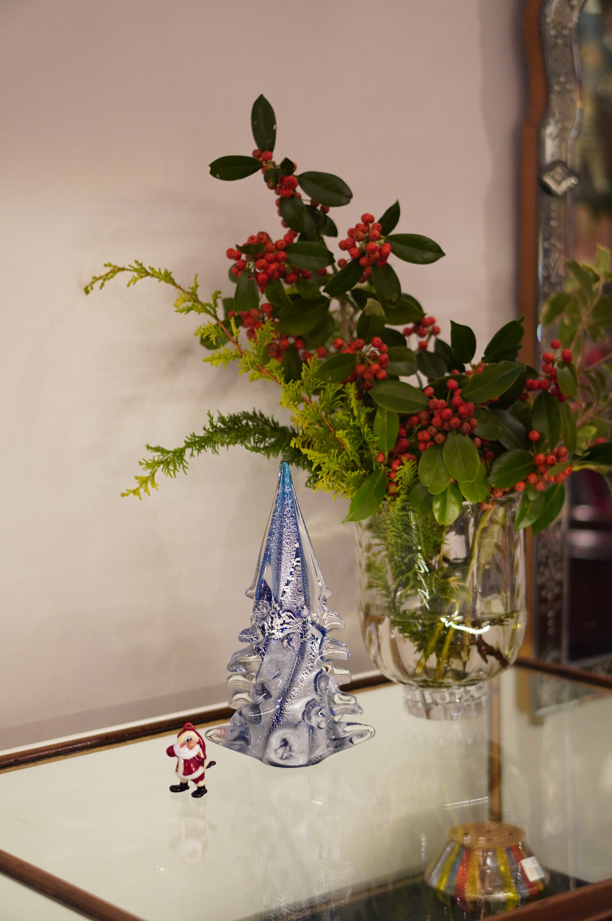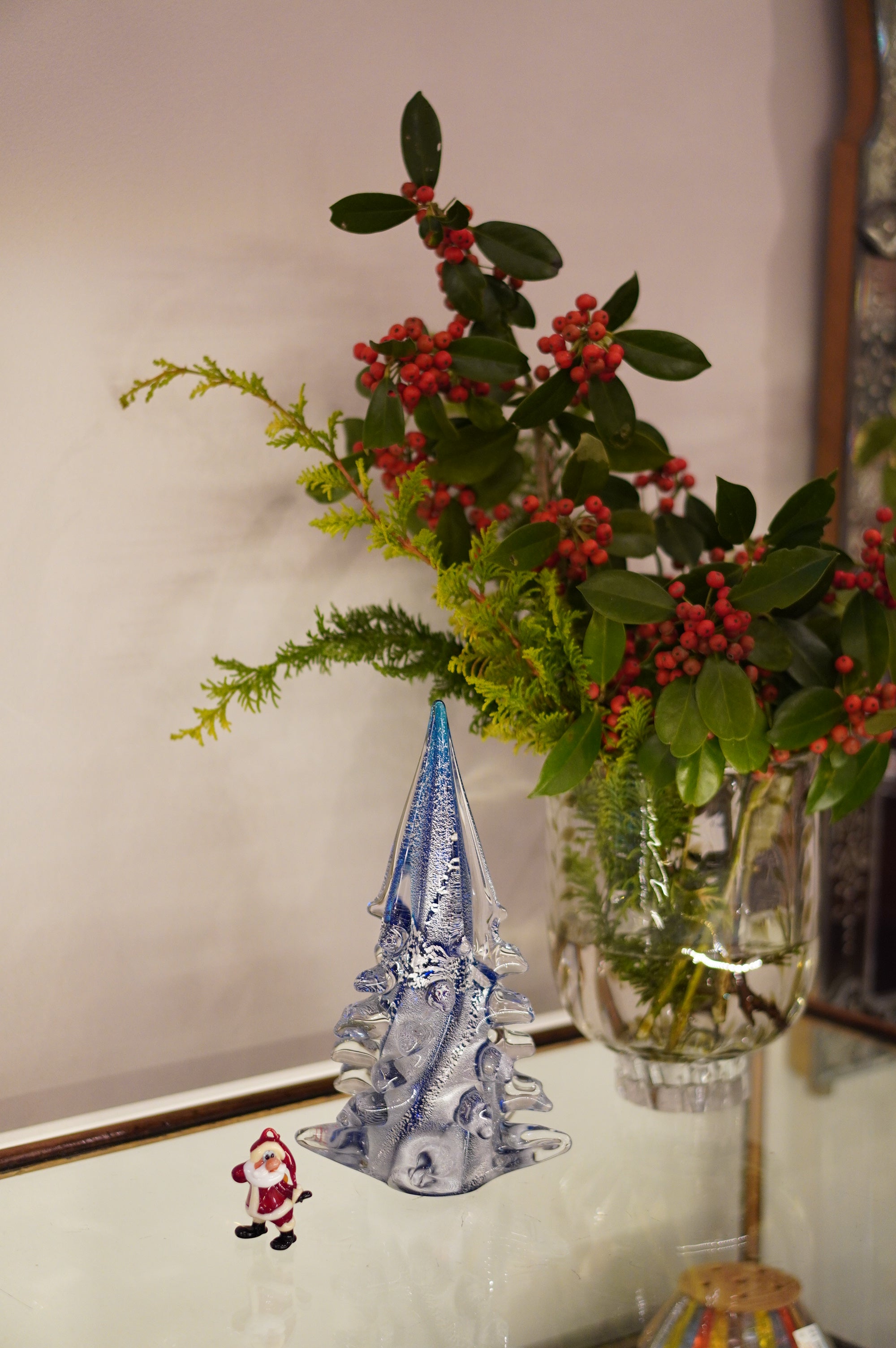クリスマスはリビングやお外には大きなツリー、お玄関や棚の上にはガラスのツリーを、いかがでしょうか?