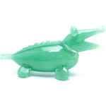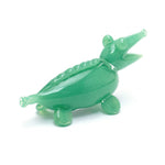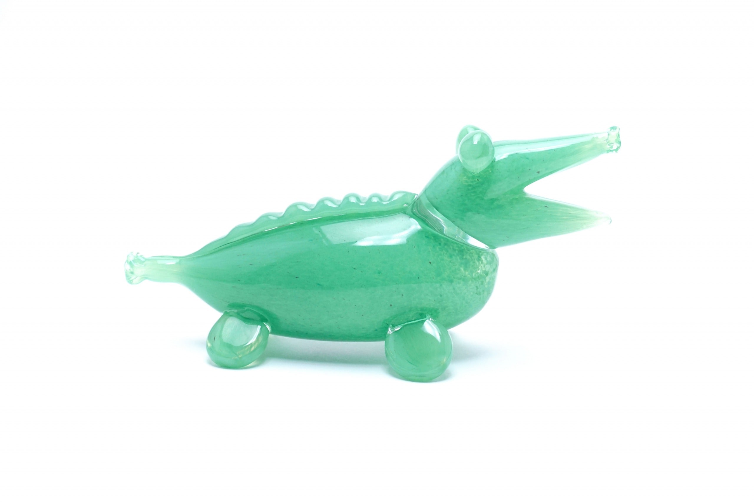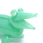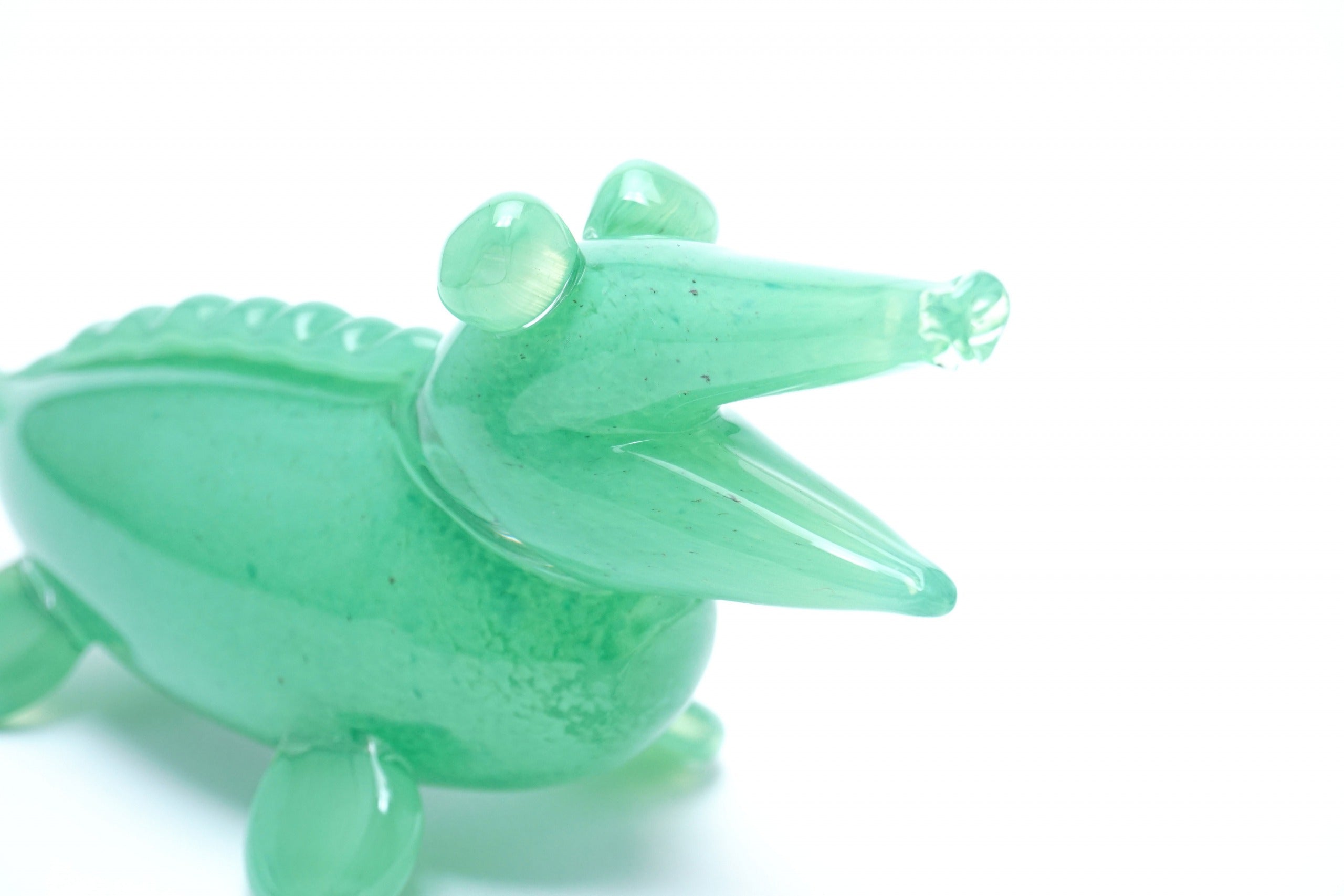透明感が美しいグリーンガラスでかたどられたわにのバルーンアート。
