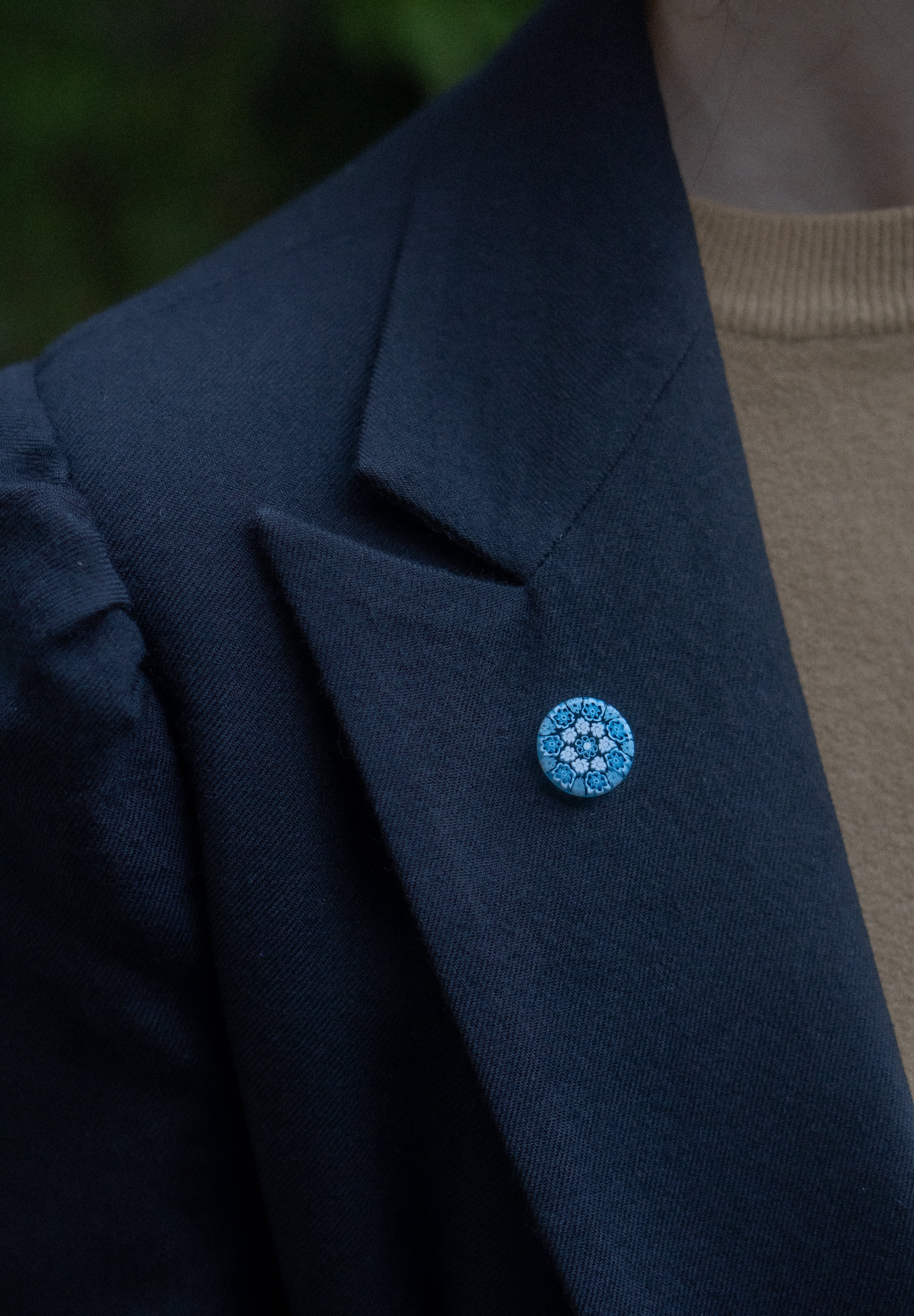 針を身につけたい場所に真っすぐさし、留め具を差し込めばすぐに楽しめるラペルピンは、ブローチを普段身につけない人にも比較的手軽なオシャレ。