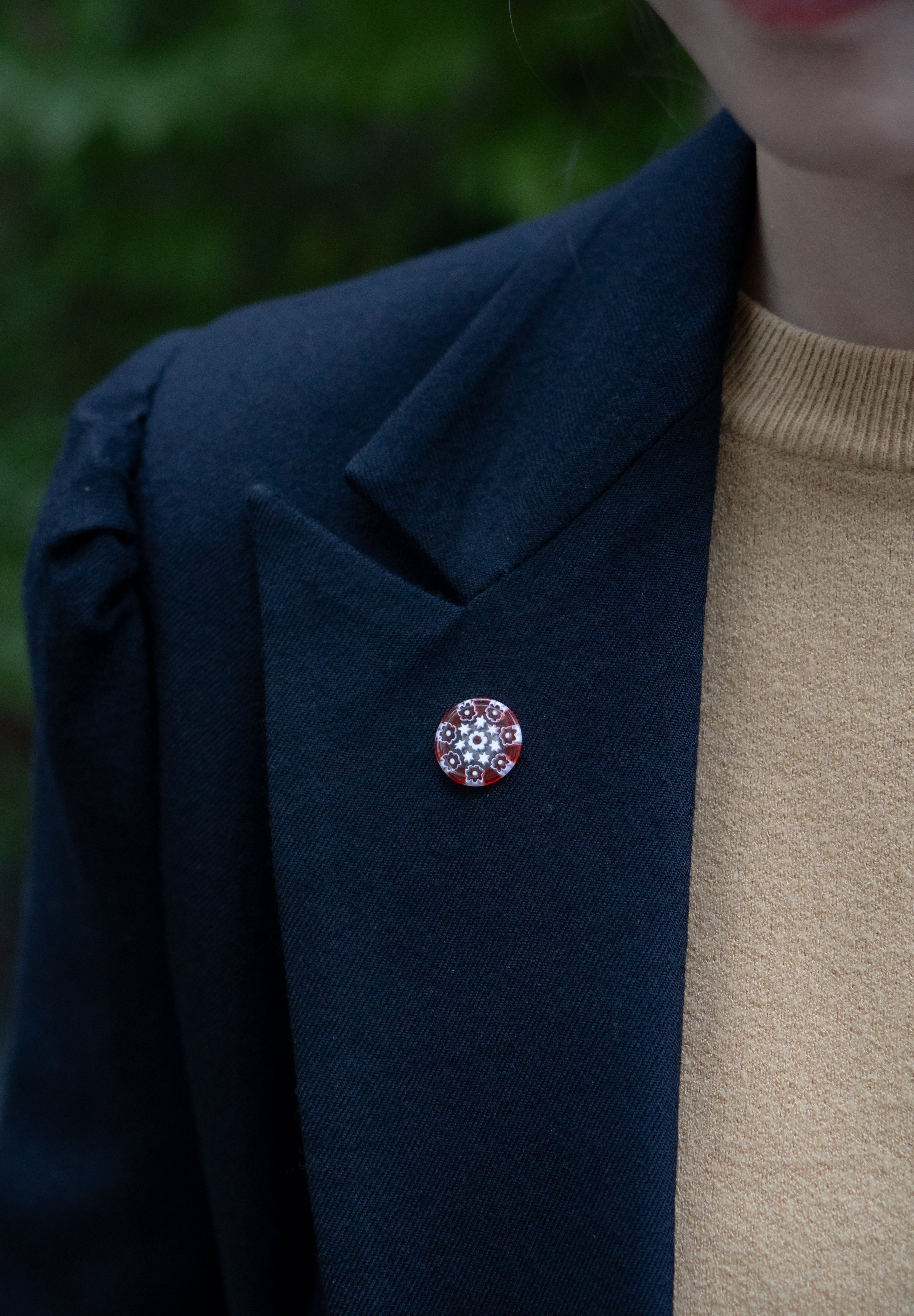 Murrine Glass lapel Pin「Petali」/Rosso Stella
