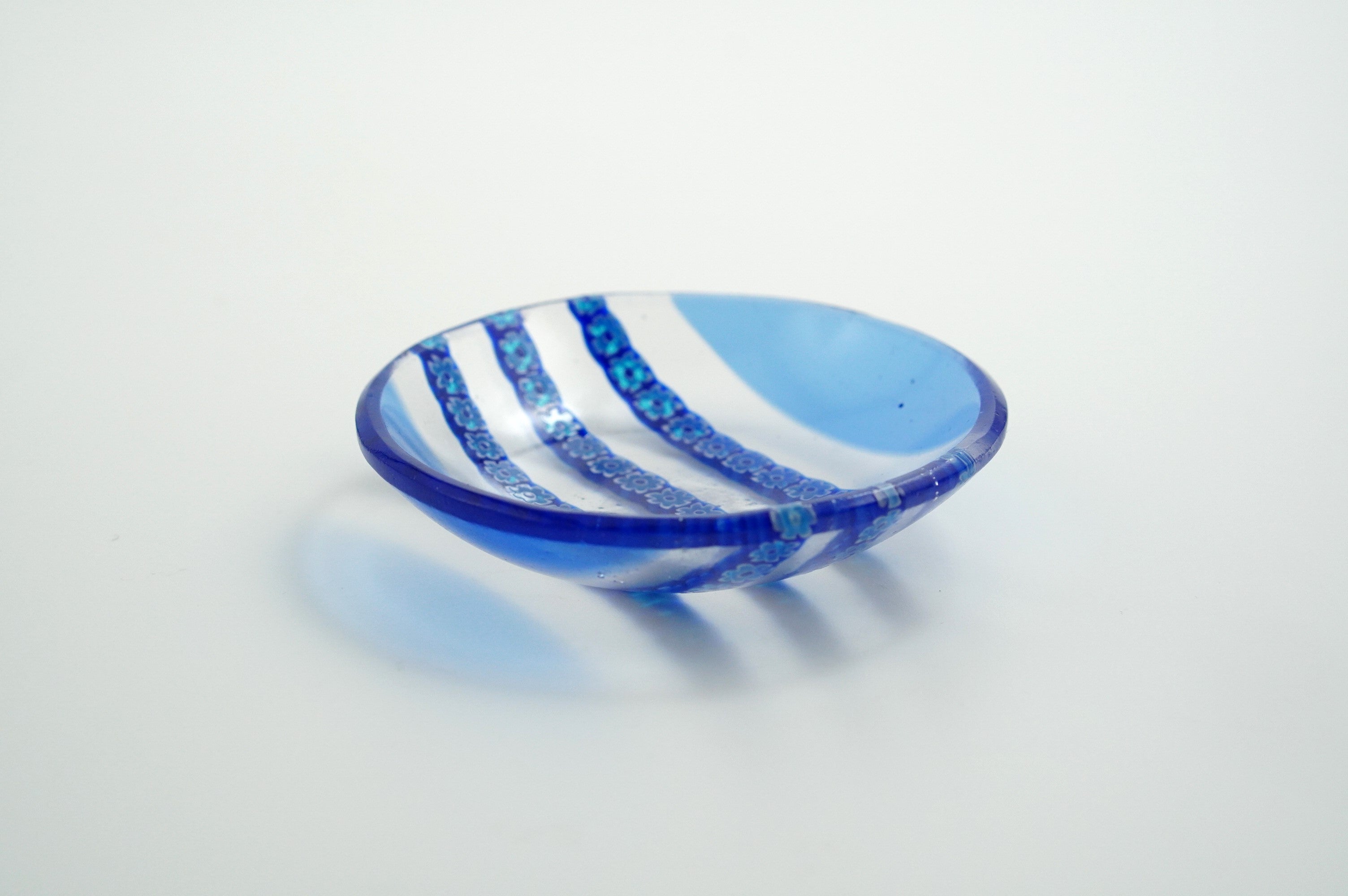 吹きガラスにおいては、制作途中に発生する小さな気泡や黒点、底面にポンテ跡(吹き竿を外した際の凹凸)がある場合がございます。