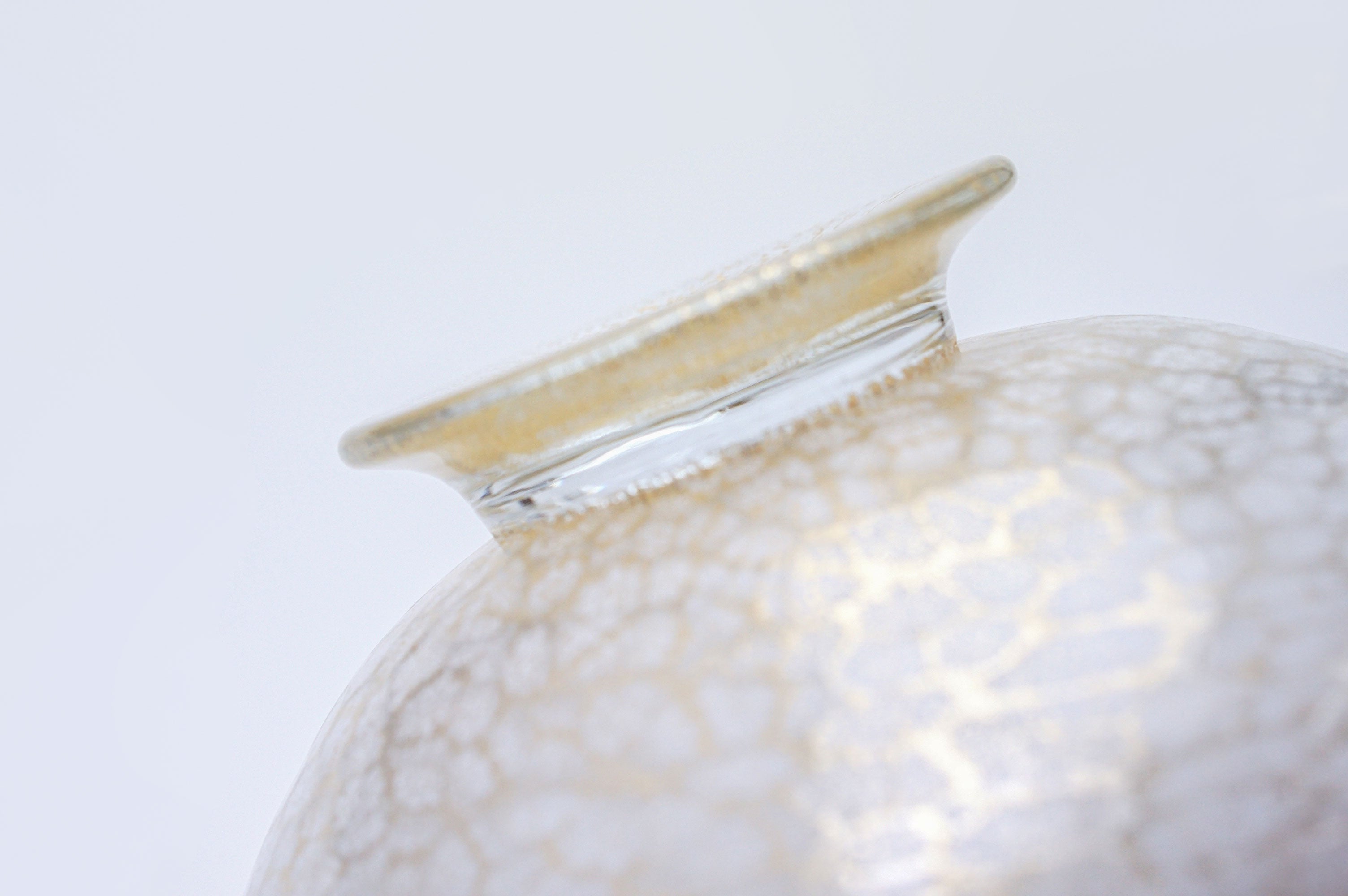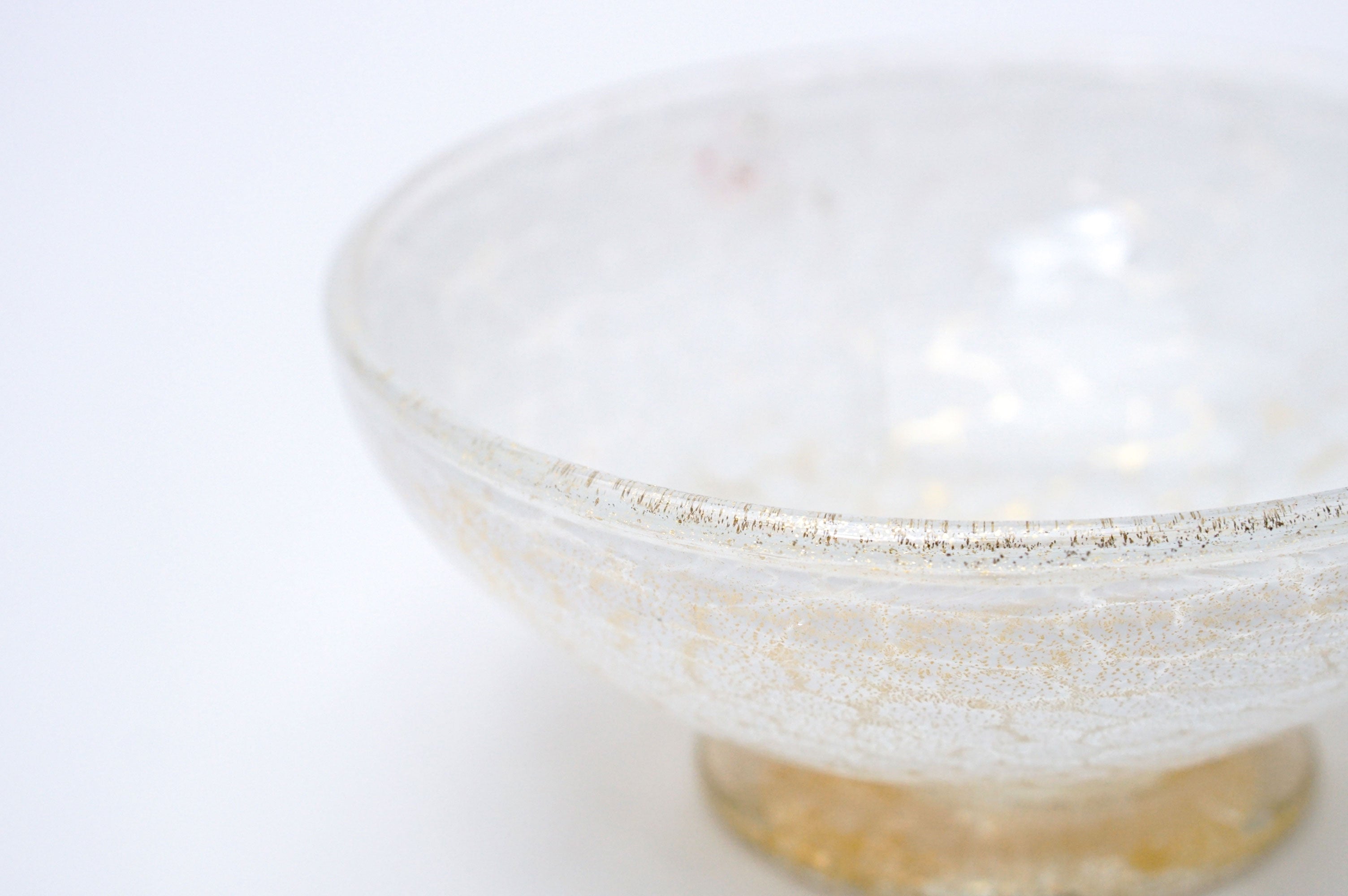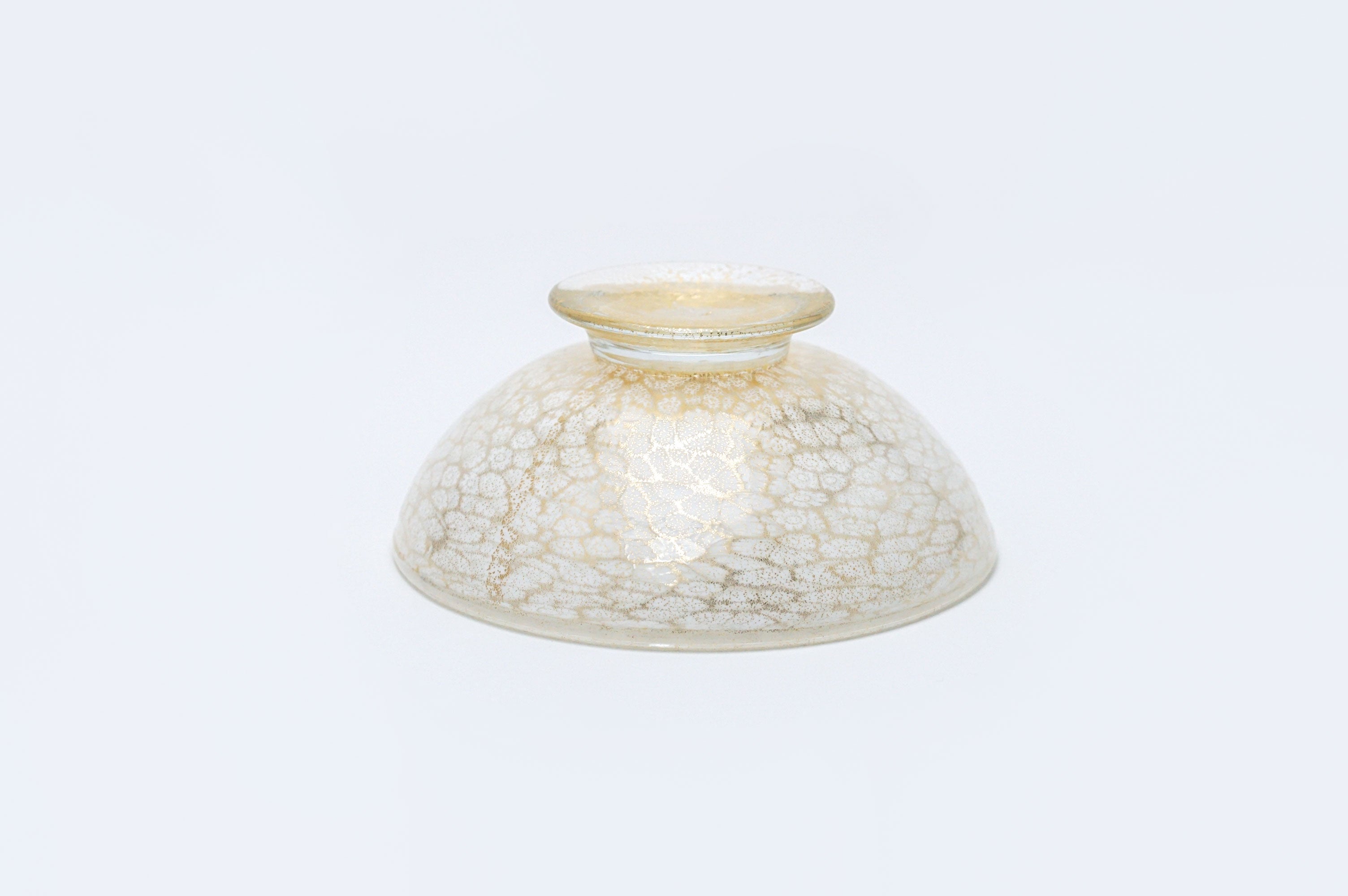 吹きガラスにおいては、制作途中に発生する小さな気泡や黒点、底面にポンテ跡(吹き竿を外した際の凹凸)がある場合がございます。