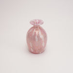 底がふっくらと丸く、首の部分がすっと絞られており、口元はかすみ草やすみれなど、繊細なお花も活けやすいひらりと花開くような形をしています。