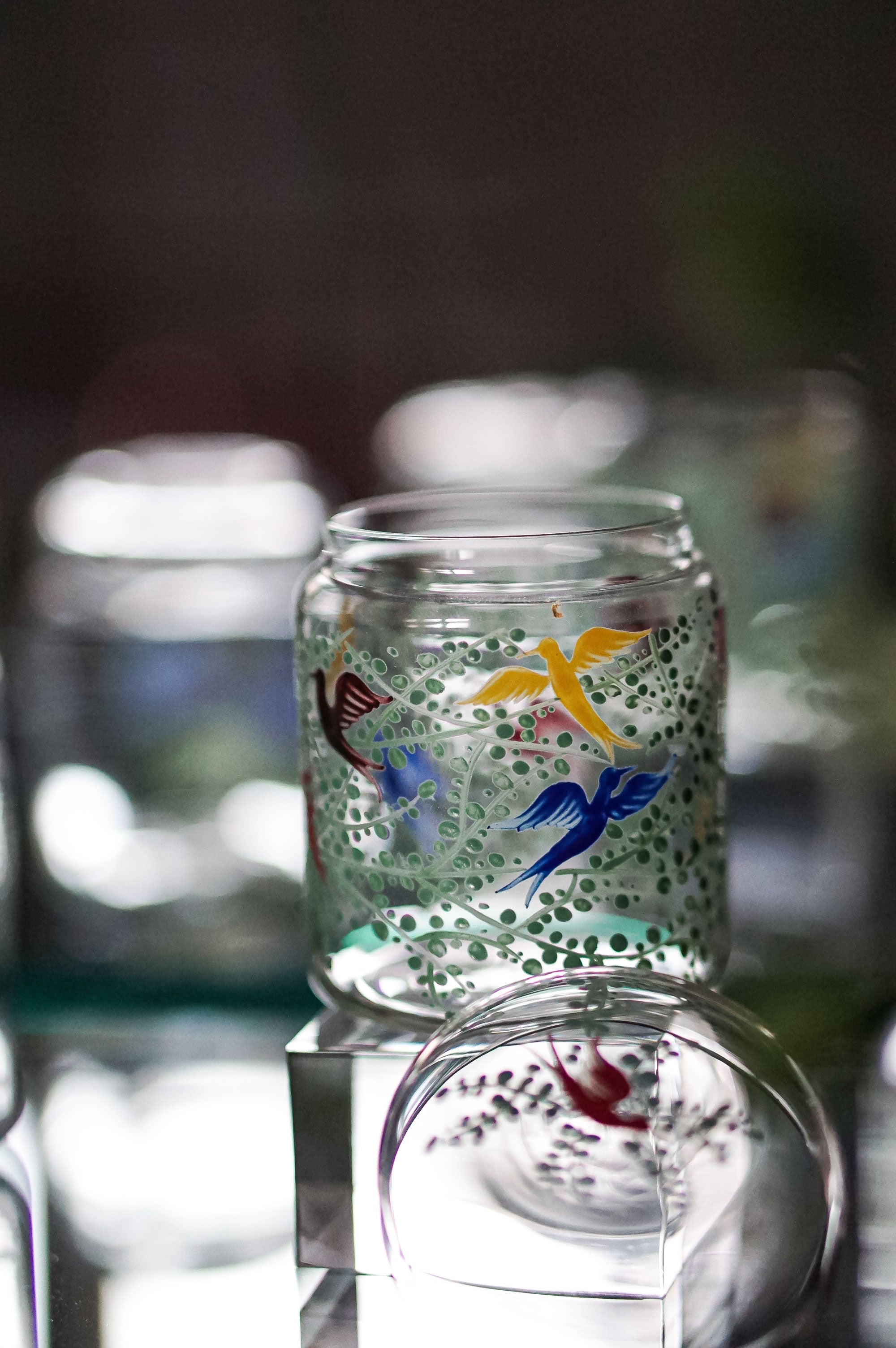 吹きガラスにおいては、制作途中に発生する小さな気泡や黒点、底面にポンテ跡(吹き竿を外した際の凹凸)がある場合がございます。