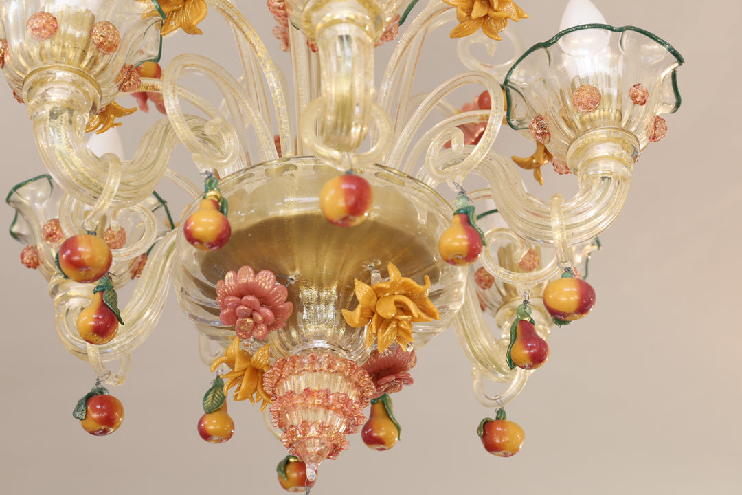 窯の熱でドロドロの状態にしたガラスを伸ばしてねじって、ひとつひとつのパーツを熟練のマエストロが丁寧に手作りし、組み上げて完成するムラーノガラスの照明は、きらきらと輝くものではありません。