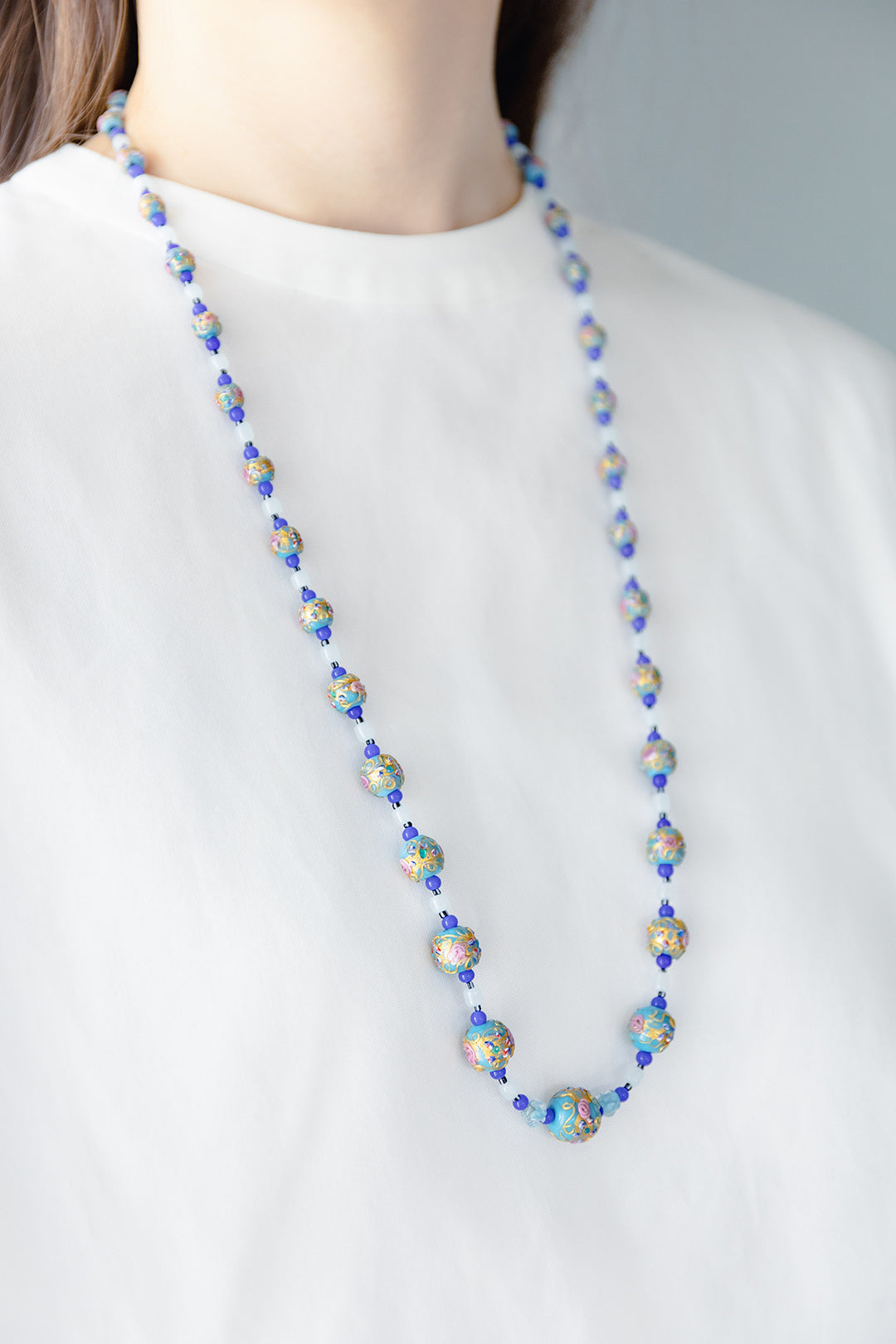 すべて一点物ではありますが、蒐集したヴィンテージビーズたちを使ってデザイン制作したネックレスの販売も行っています。