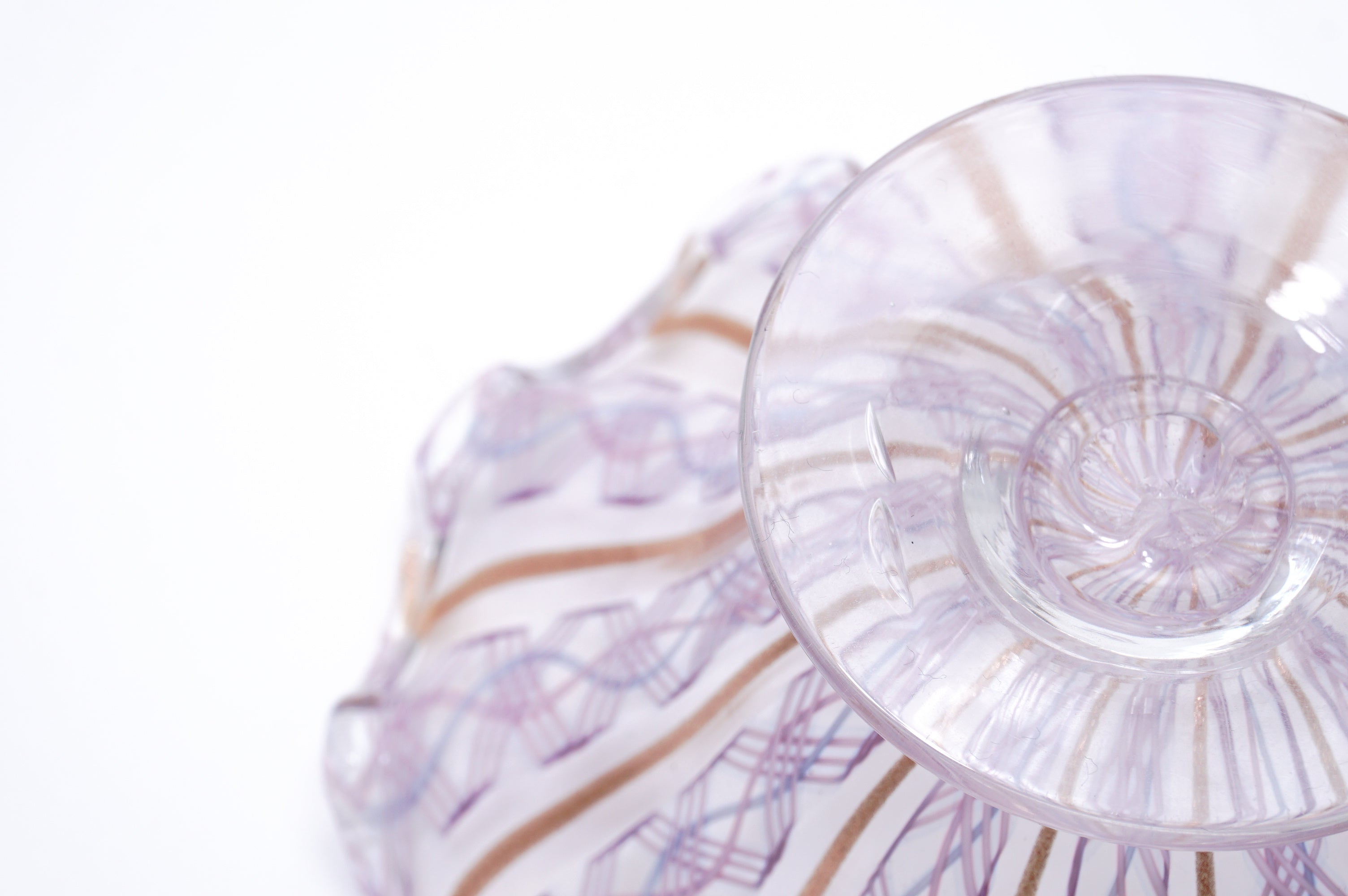 吹きガラスにおいては、制作途中に発生する小さな気泡や黒点、底面にポンテ跡(吹き竿を外した際の凹凸)がある場合がございます。