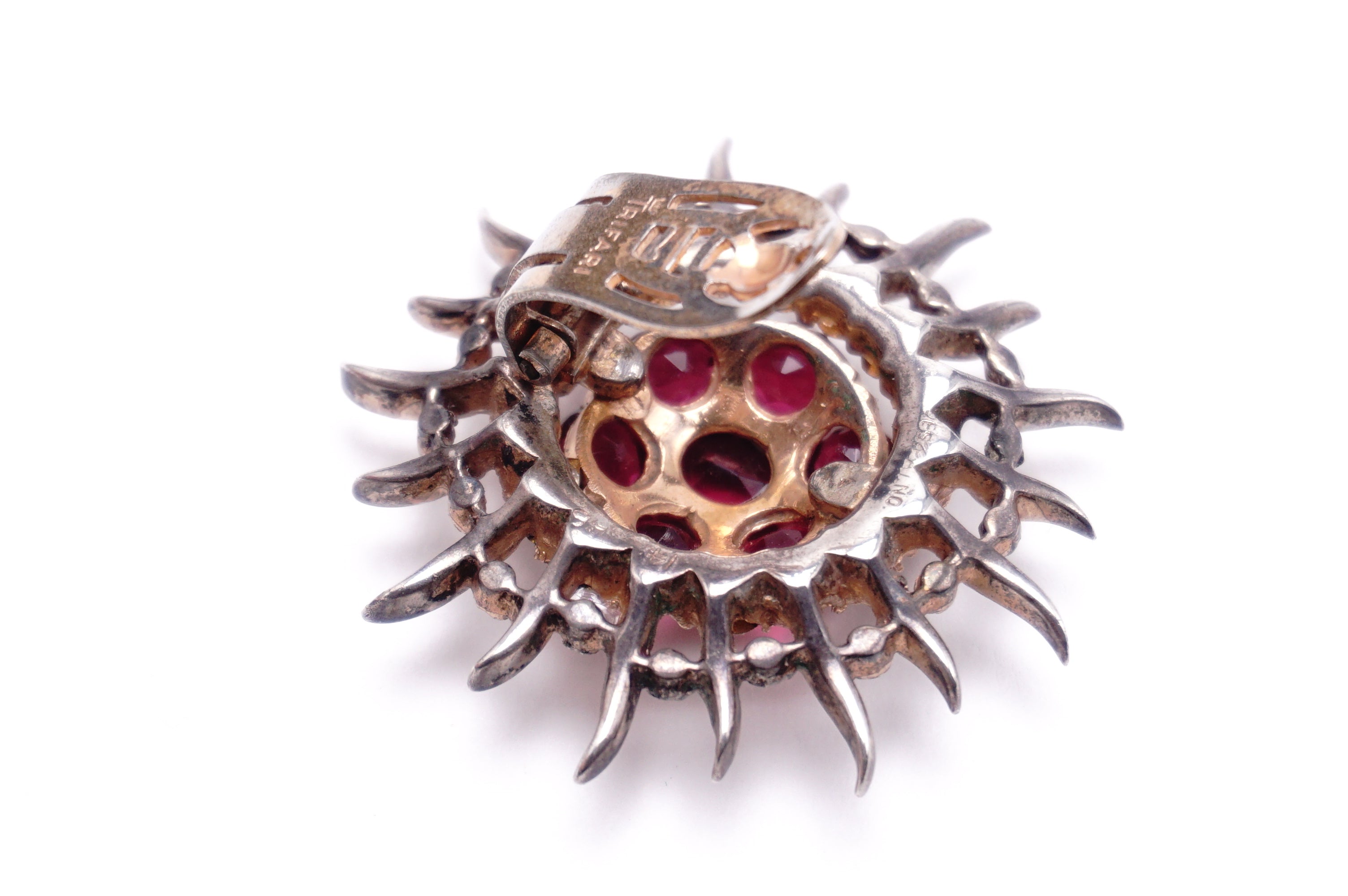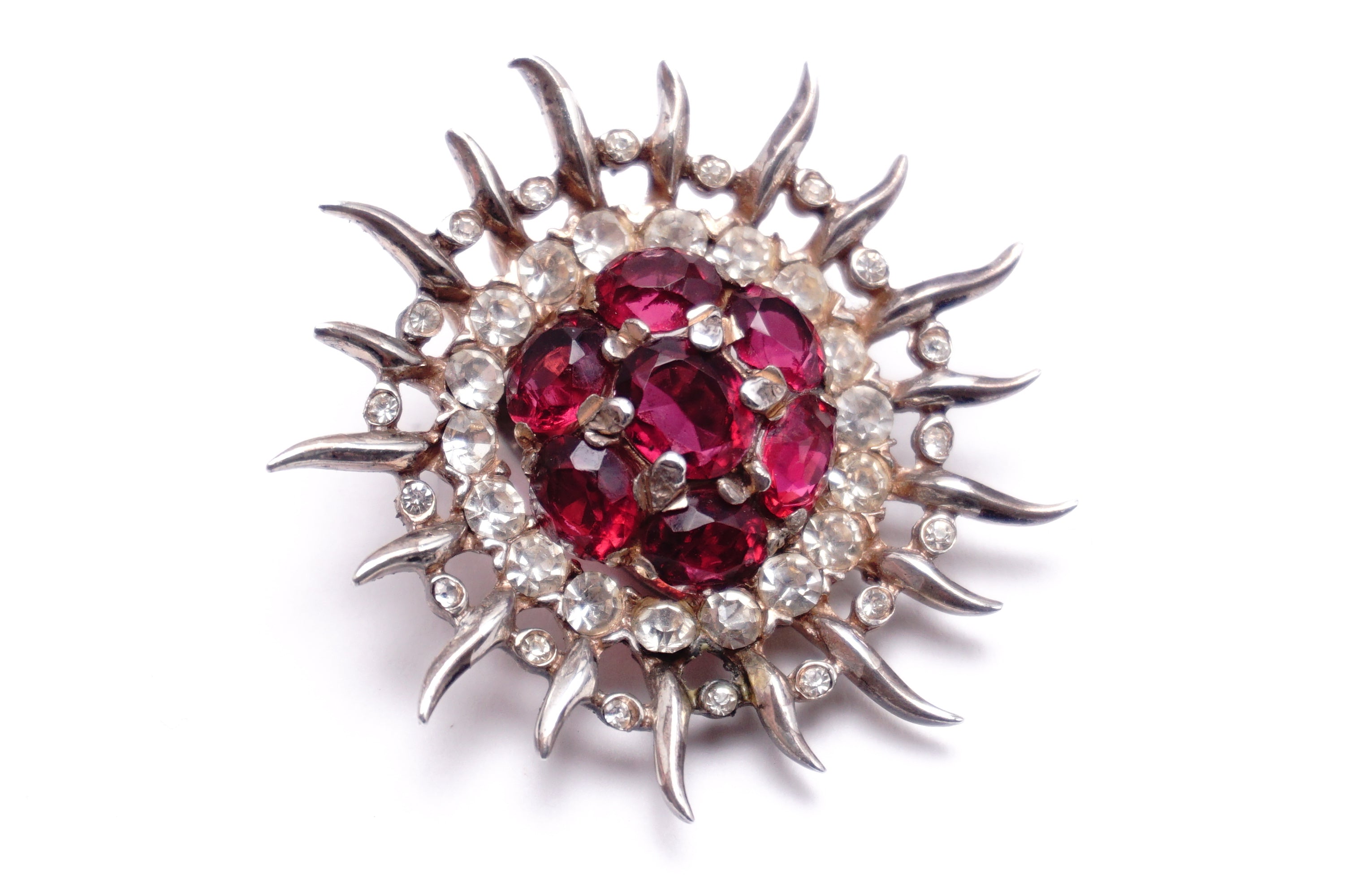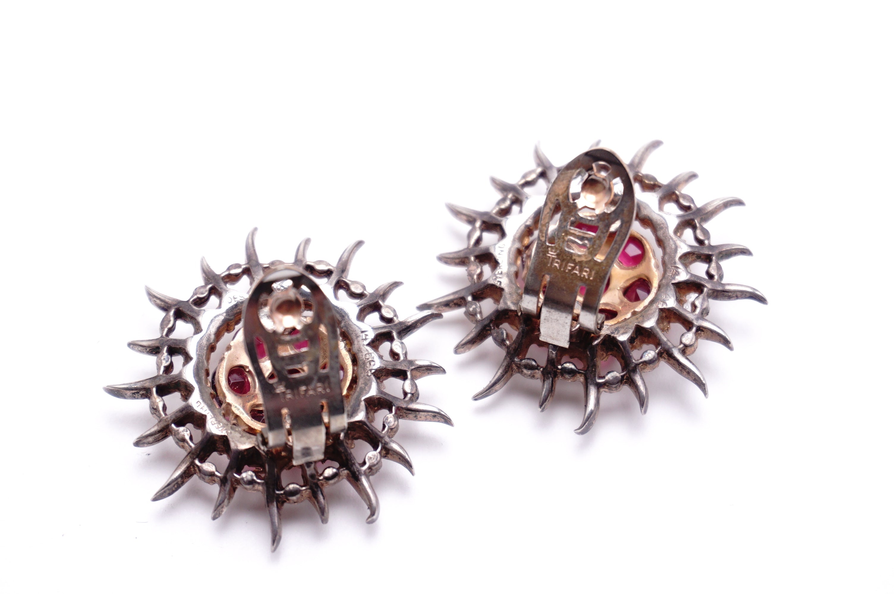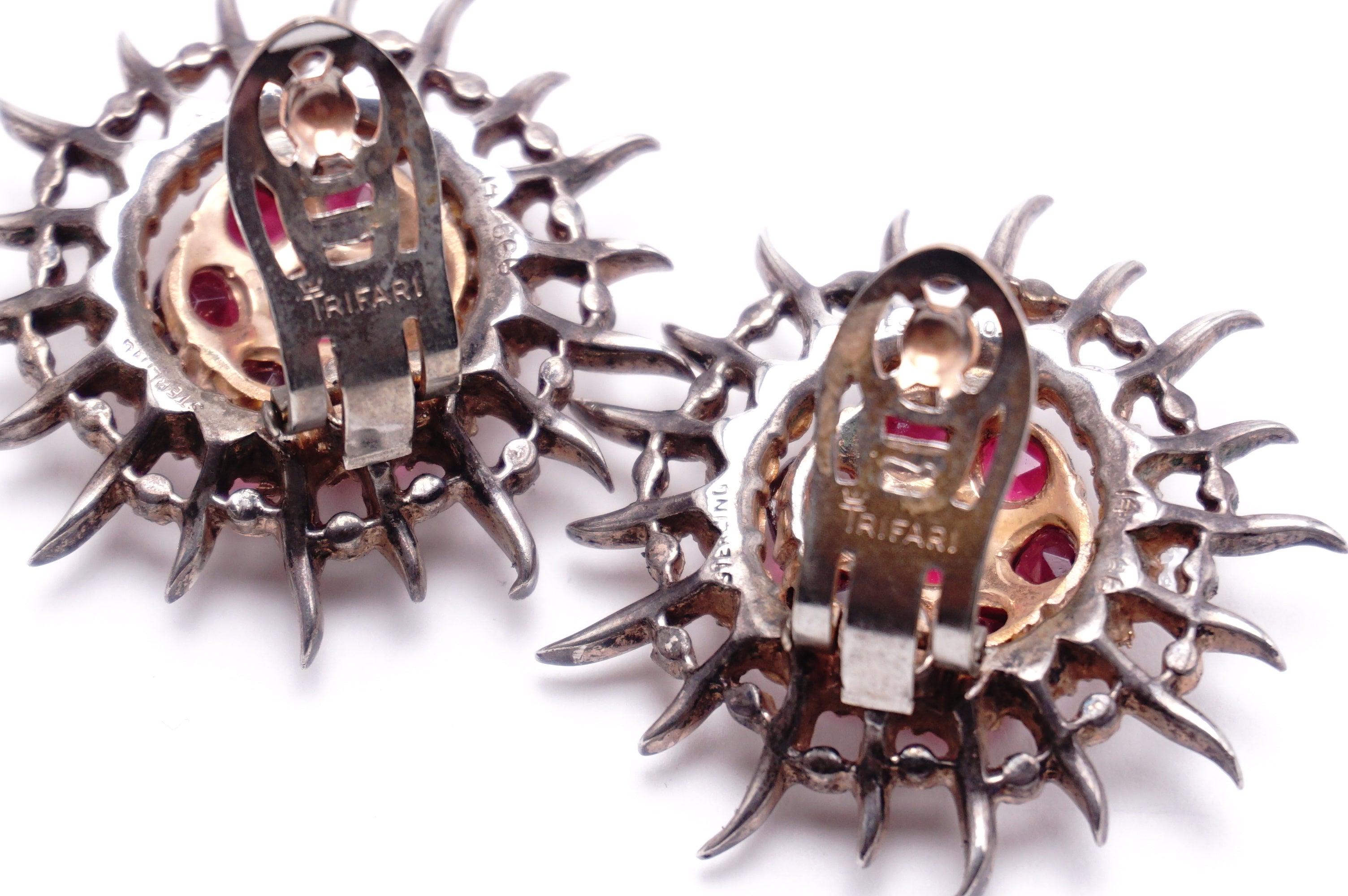 Trifari シルバー サンバースト ルビー イヤリング 白輪