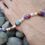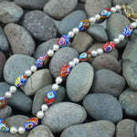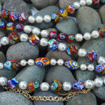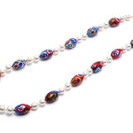 イタリアはムラーノ島の技術が光る、小さな金太郎飴状のガラス棒を芯に圧着し作るムリーネビーズ。