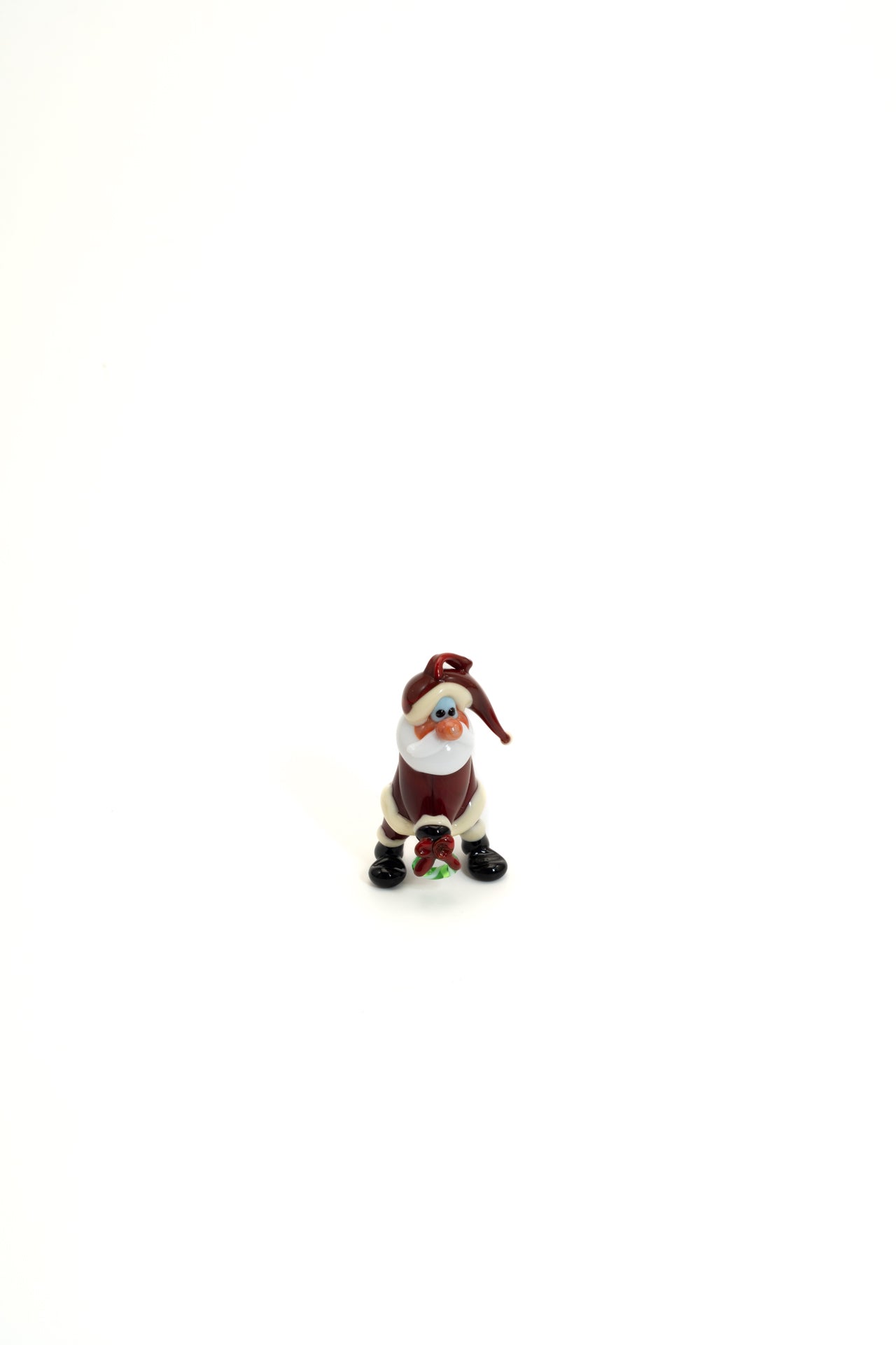 「さて、どこに飾ろうかのぉ?」と話しだしそうな、愛らしいサンタさんです。